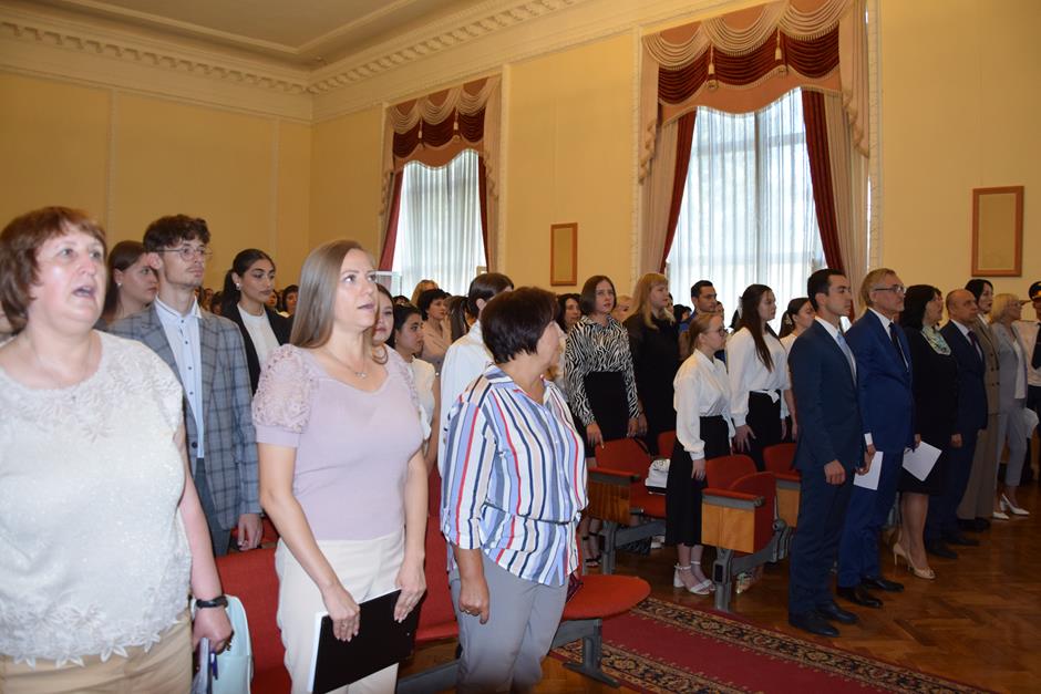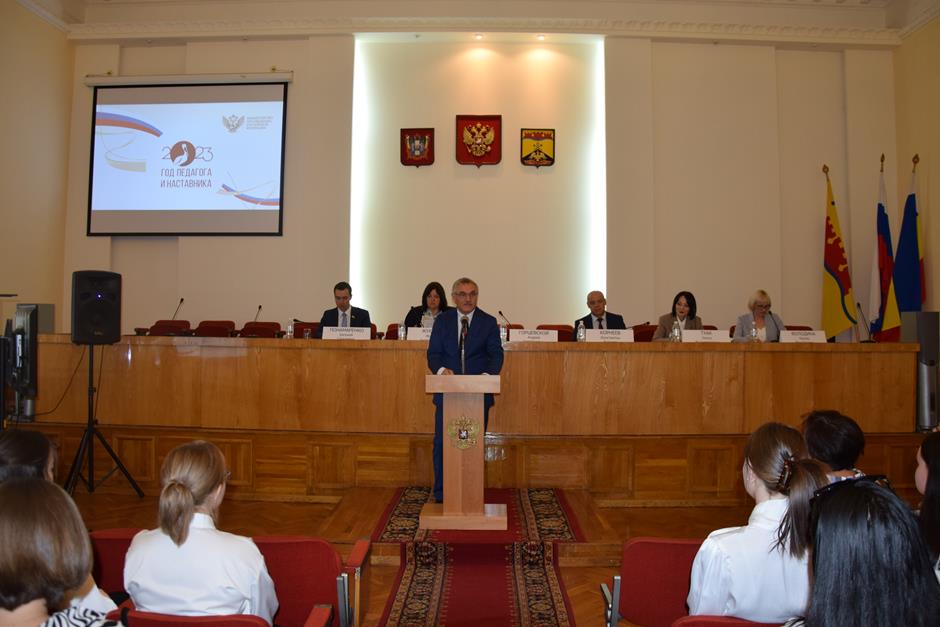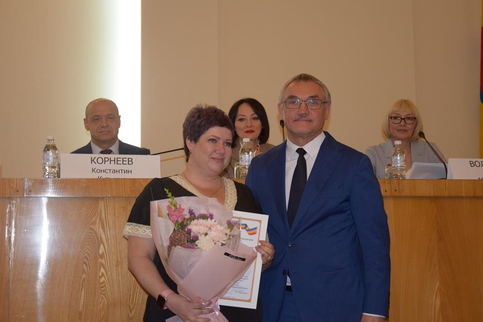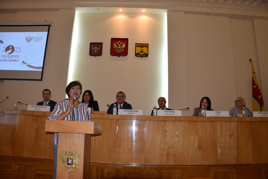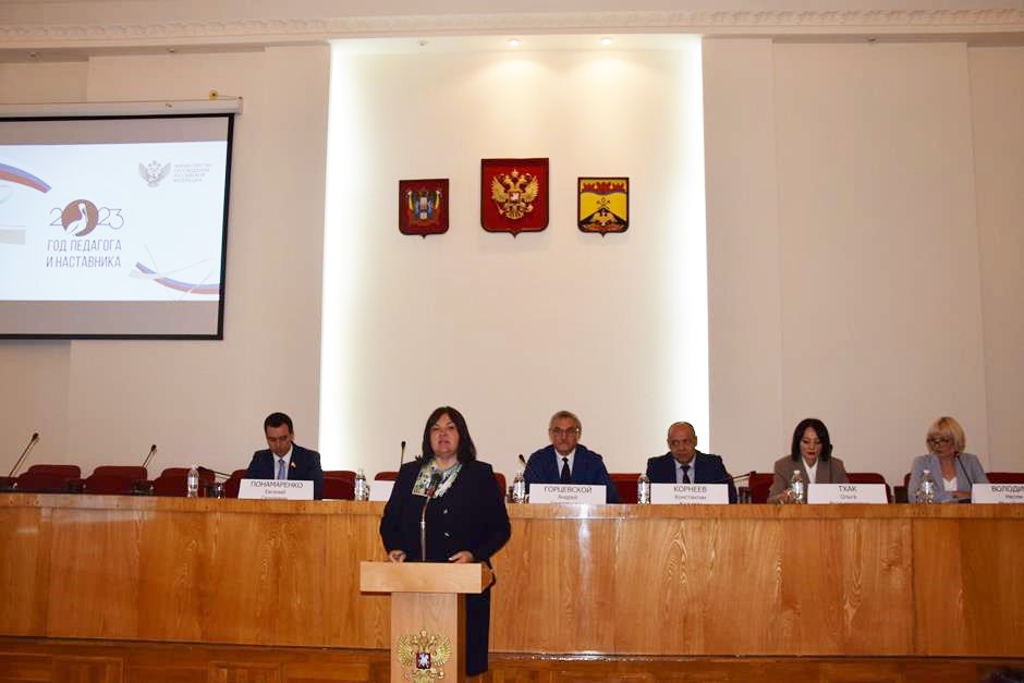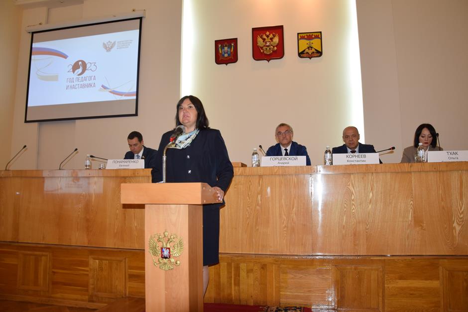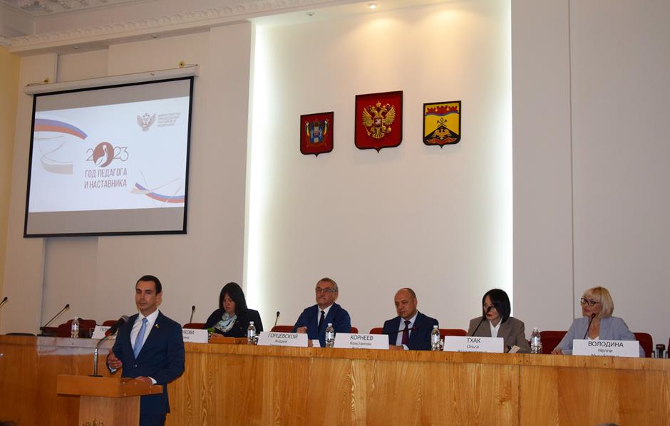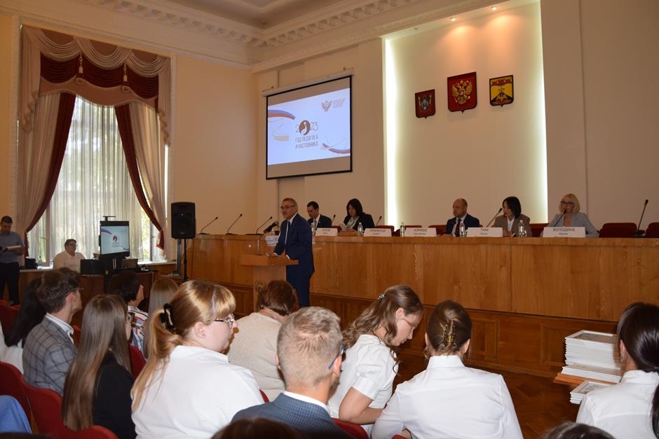 В преддверии 1 сентября педагогическое сообщество ежегодно обсуждает итоги учебного года, планы и задачи на новый период, актуальные вопросы и пути дальнейшего развития муниципальной системы образования. Традиционная августовская конференция в Год педагога и наставника стала в Шахтах событием особого статуса. Мероприятие прошло в празднично-деловой атмосфере. Перед собравшимися выступили, поблагодарили их за труд и пожелали новых достижений в наступающем учебном сезоне председатель комитета ЗСРО по взаимодействию с общественными объединениями, молодежной политике, физической культуре, спорту и туризму Ирина Жукова, депутат Законодательного Собрания Ростовской области Евгений Понамаренко, и.о. председателя городской Думы – главы города Константин Корнеев, глава Администрации Андрей Горцевской. Заслуги учителей, воспитателей, педагогических коллективов, ветеранов профессии были отмечены многочисленными поощрениями федерального, областного и муниципального уровней. Константин Корнеев также вручил награды депутат Государственной Думы России Екатерины Стенякиной.