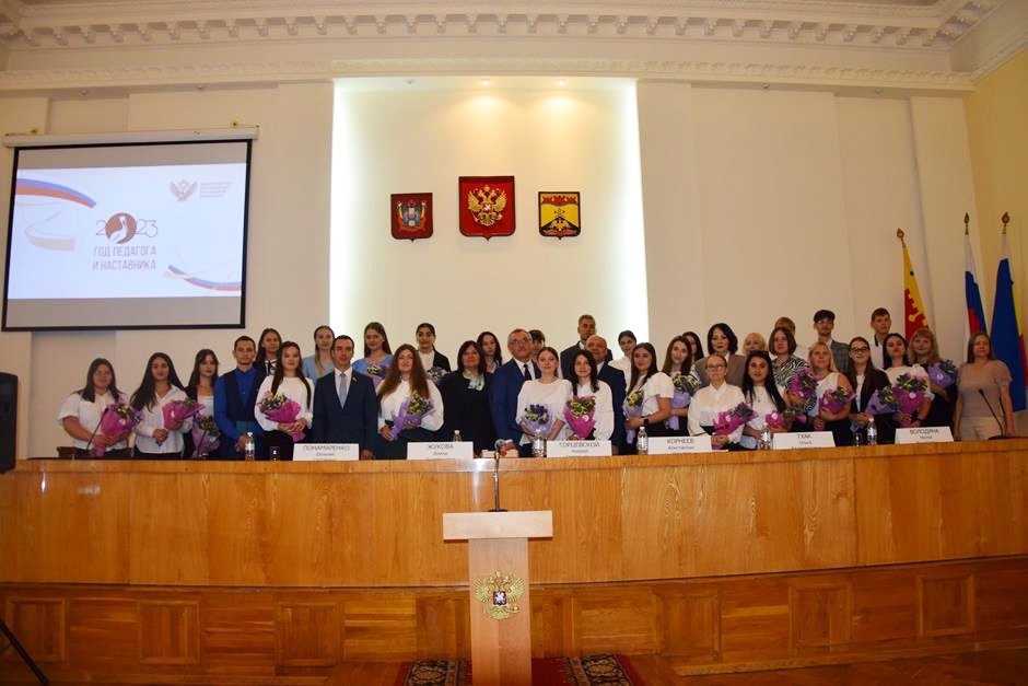 В 2023-ем шахтинское педагогическое сообщество принимает в свою семью 30 новичков, молодых учителей встретили напутствиями, аплодисментами и цветами.