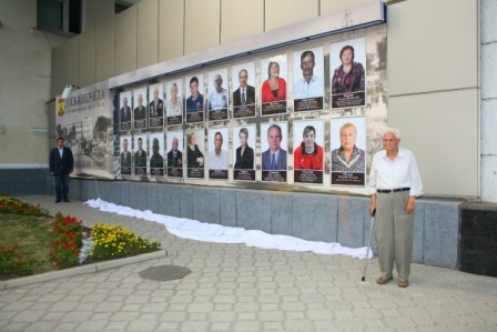 Право разрезать ленточку и открыть взору горожан Доску почёта с портретами двадцати достойных шахтинцев было предоставлено П.Ф.Диденко — ветерану Великой Отечественной войны, Почётному гражданину города Шахты, долгожителю, чей возраст уже перевалил за сотню лет. Белое полотнище вмиг слетело с Доски и все присутствующие с интересом, с возгласами узнавания стали рассматривать портреты и подписи к ним. И это понятно, ведь на Доску почёта выдвигали людей активных, созидательных, чьи дела на виду у всех и слава которых уже вышла за пределы их производственных, учебных, творческих, лечебных, спортивных коллективов.