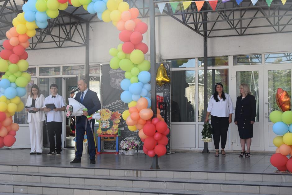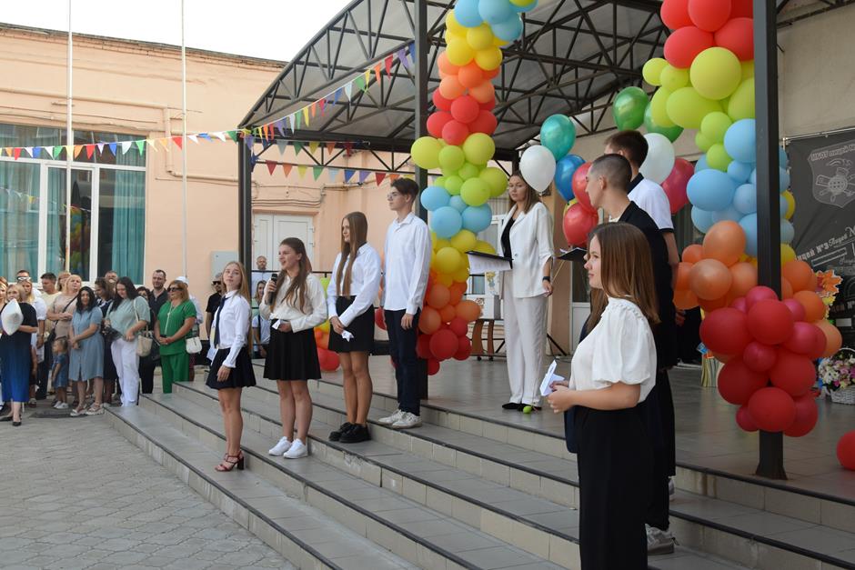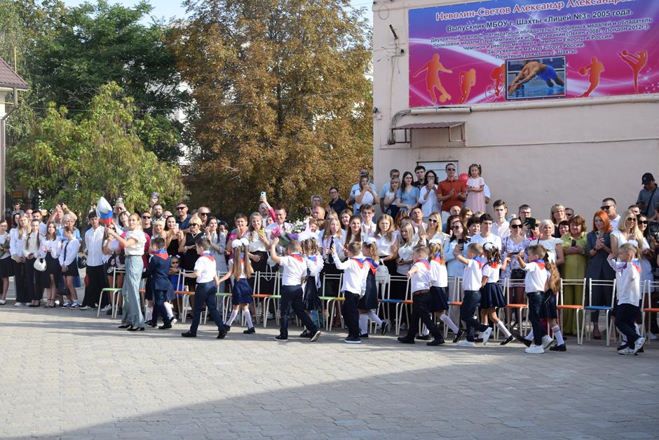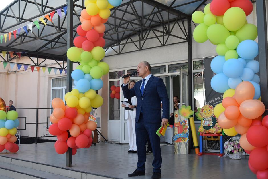 С Днем знаний коллектив учеников и педагогов под руководством Асии Файзулиной поздравил и.о. председателя городской Думы – главы города Шахты Константин Корнеев, выпускник этого общеобразовательного учреждения.