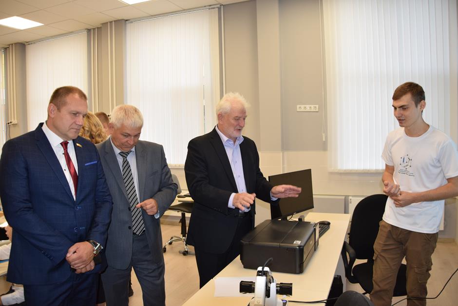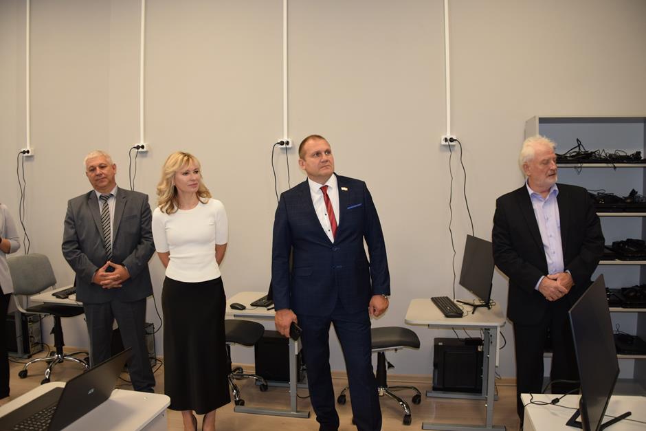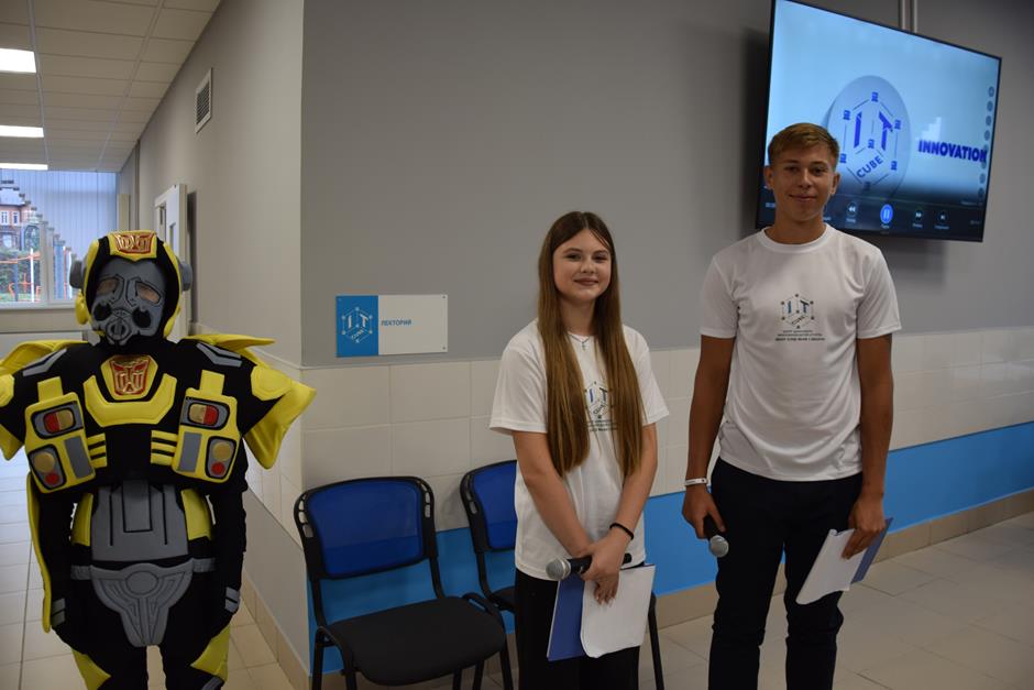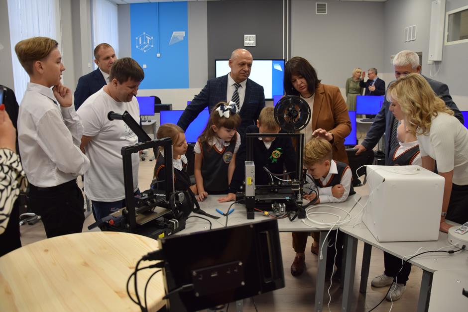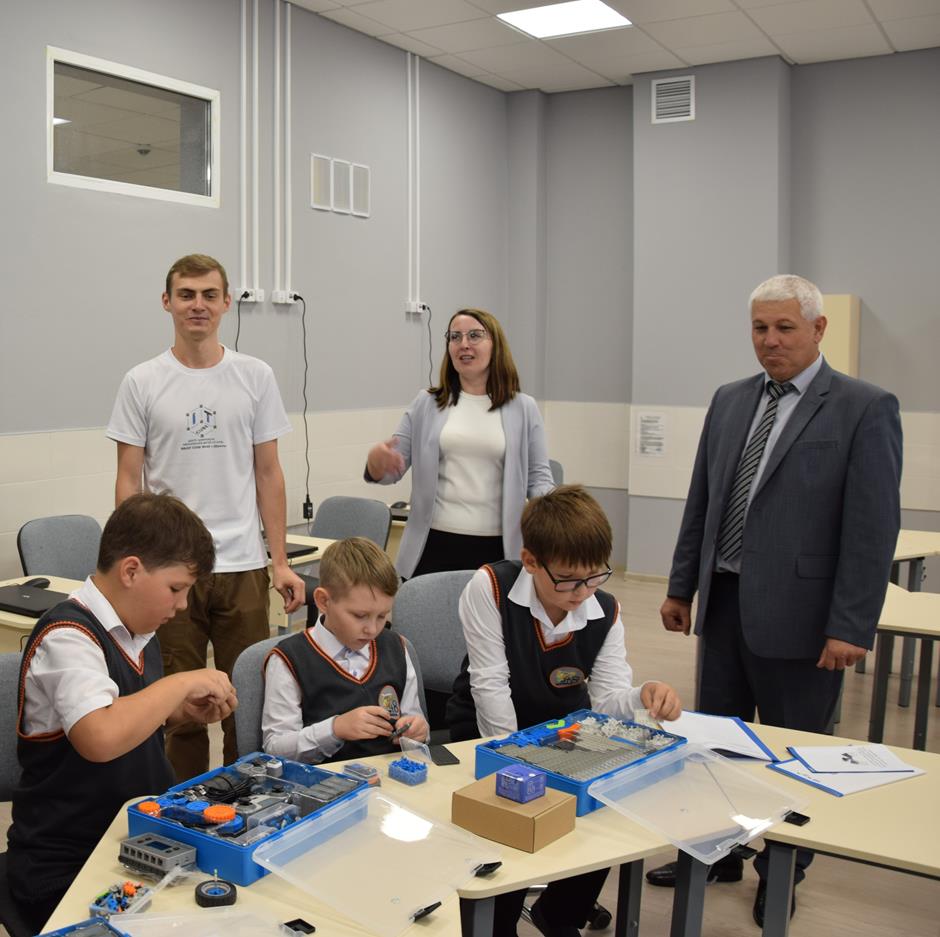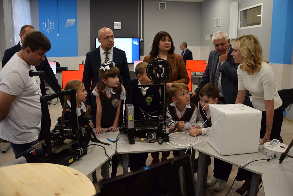 Константин Корнеев, Владимир Петров, Ольга Бакурова и учащийся 7а класса Артем Межевикин дали старт работе «IT-куба». Руководитель Татьяна Сергеева провела экскурсию по аудиториям ознакомила с оснащением кабинетов, которое уже вовсю используется по назначению. Занятия здесь уже начались. Центр готов принять порядка 200 человек (уже подано 145 заявок), а в следующем году это количество планируется увеличить вдвое.