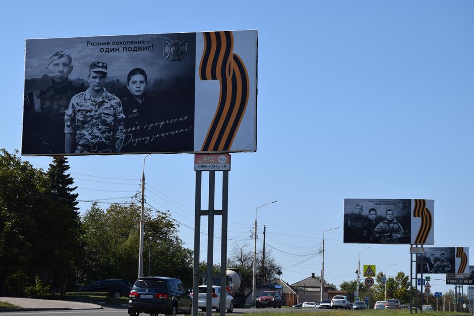 Изготовлен и установлен 21 баннер с фотографиями кадет с родителями, являющимися участниками специальной военной операции. Они установлены на рекламных конструкциях по ул. Маяковского: от круга в районе бывшего «Молзавода» по направлению выезда из города на федеральную трассу М4-Дон. Для сохранения концепции патриотического проекта баннеры размещены единым блоком, иллюстрируя примеры воинской доблести, традиций, династий, служения Отечеству шахтинцев разных поколений, выбравших профессию Родину защищать. Дело отцов, отстаивающих мир и независимость страны в ходе СВО, продолжают их сыновья, постигая азы воинской науки в рядах учащихся одного из лучших кадетских корпусов России.