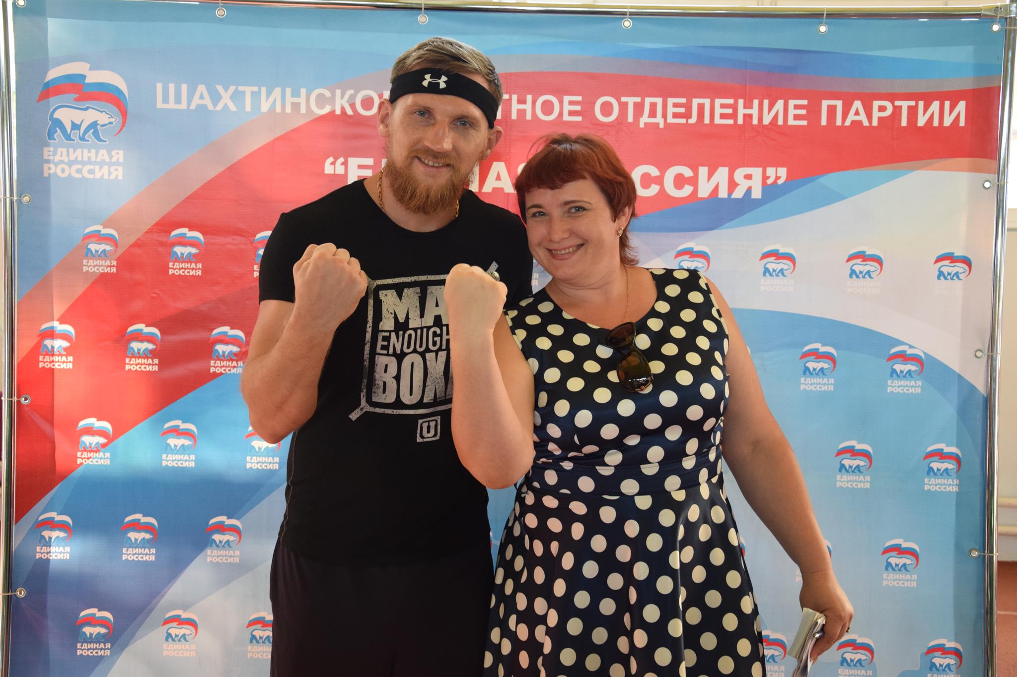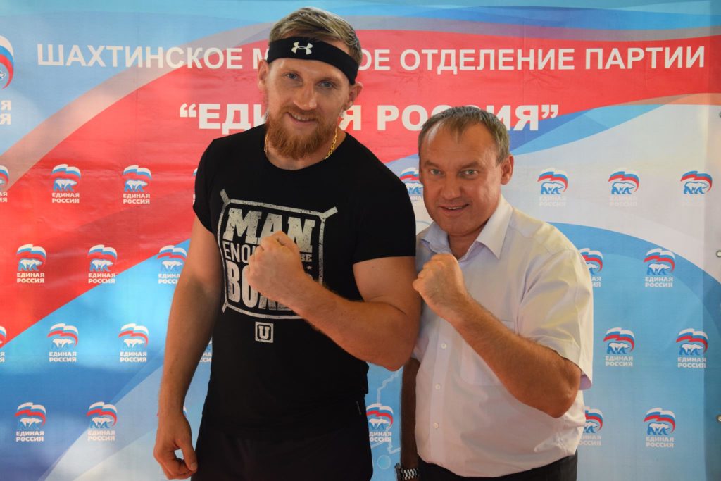 8 сентября в легкоатлетическом манеже шахтинцы встречали российского боксёра-профессионала, чемпиона мира, мастера спорта по боксу и армейскому рукопашному бою Дмитрия Кудряшова, которого соперники с трепетом именуют "Русская кувалда"! Дмитрий прибыл в город по приглашению депутата Законодательного Собрания РО Екатерины Стенякиной.