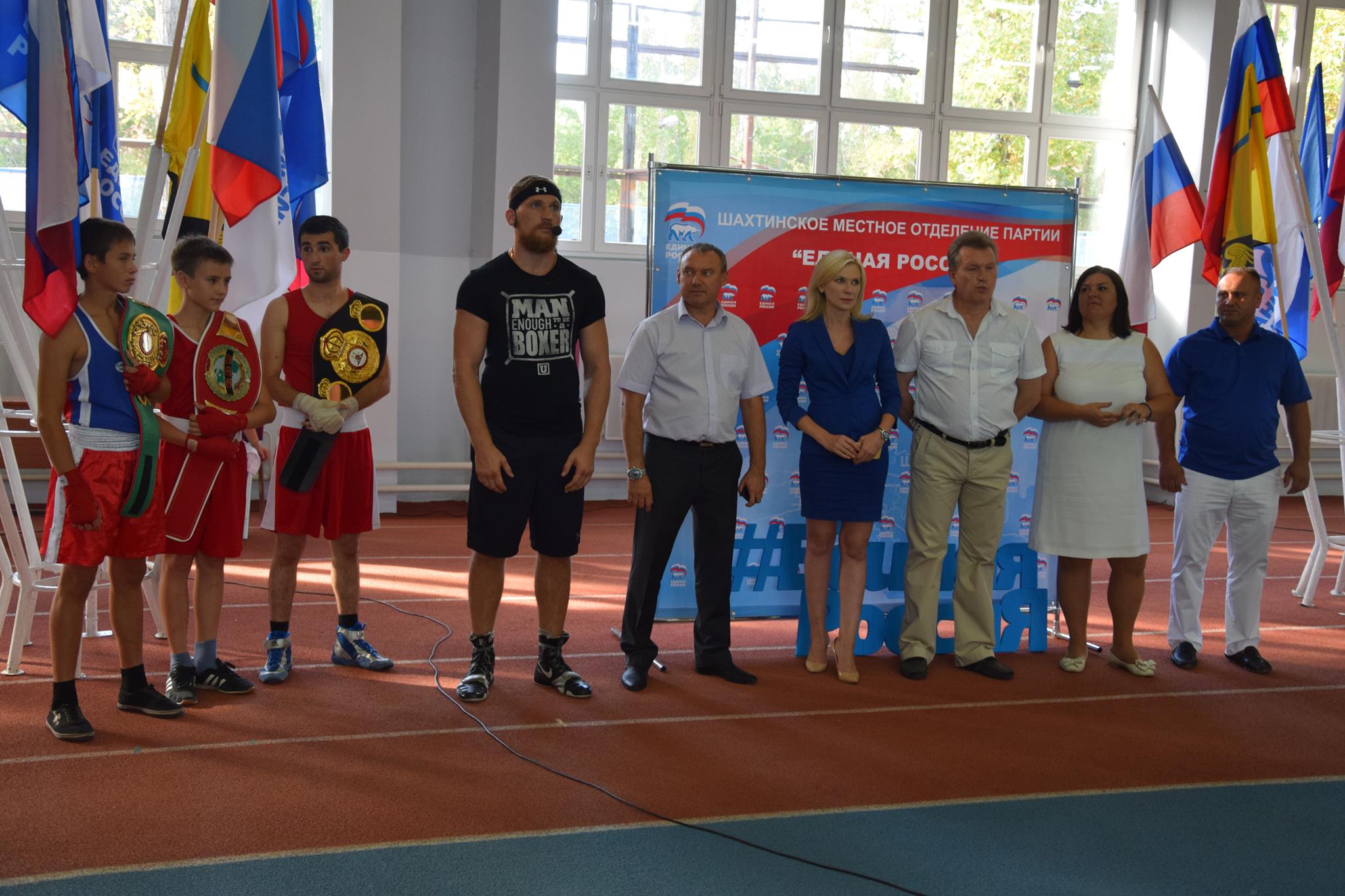 Дмитрия Кудряшова приветствовали председатель городской Думы — глава города Шахты Ирина Жукова, зам.главы Администрации Дмитрий Кравцов, чемпион Олимпийских игр, чемпион мира, Почётный гражданин города Шахты Виктор Трегубов, вице-президент шахтинской федерации бокса Николай Малков, члены «Молодой гвардии Единой России», юные боксёры и спортивная общественность города. Дмитрий вышел под песню «Кувалда», которую специально для него записал рэпер Dima Stereo. Уже через несколько минут он вёл непринуждённый разговор со спортсменами и показывал им «фишки», которые сам освоил в ходе своей профессиональной карьеры, перенял у выдающихся спортсменов мира.