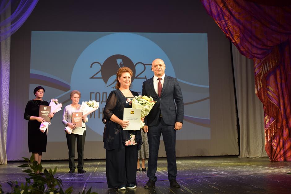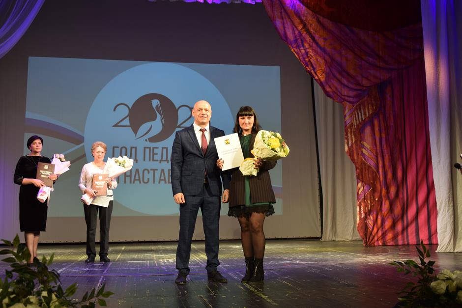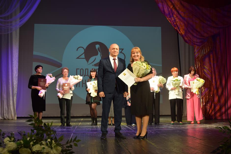 Шахтинских учителей, работников среднего профессионального образования и воспитателей поздравили с профессиональным праздником в шахтинском драматическом театре. Церемонию награждения на торжественном собрании «Учителями славится Россия!» открыла председатель комитета Законодательного Собрания Ростовской области по взаимодействию с общественными объединениями, молодежной политике, физической культуре, спорту и туризму Ирина Жукова, передавшая также поздравления депутата Государственной Думы Федерального Собрания РФ Екатерины Стенякиной. Собравшихся приветствовали депутат ЗСРО Аркадий Горцевской, и.о. председателя городской Думы – главы города Шахты Константин Корнеев. Вместе с заместителем главы Администрации Ольгой Тхак он вручил медали «За заслуги в области образования», учрежденные в Шахтах в Год педагога и наставника. За значительный вклад в развитие образования, многолетний добросовестный труд в области образования, многолетнюю и плодотворную наставническую деятельность их удостоены: