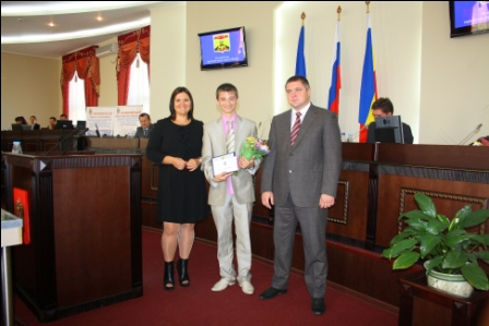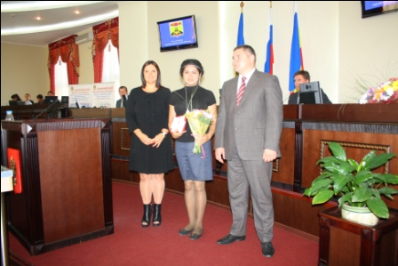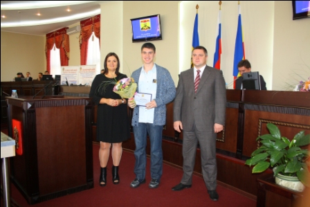 Заседание началось с приятной миссии: вручения мэром Д.И.Станиславовым и председателем городской Думы И.А.Жуковой именных стипендий студентам ВУЗов и СУЗов города Шахты по итогам летней зачетно-экзаменационной сессии 2011-2012 учебного года. Традиционно ими стали 10 молодых людей, это: Ткачев Андрей Борисович — 2 курс Шахтинского института (филиал) ФБГОУ ВПО Южно-Российского Государственного технического университета (НПИ); Березняк Сергей Александрович – 2 курс ФБГОУ ВПО «Южно-Российский государственный университет экономики и сервиса»; Игнатьева Юлия Сергеевна – 4 курс ШФ НОУ ВПО Южно-российский гуманитарный институт; Данченко Наталия Ивановна – 4 курс ГБОУ СПО РО «Шахтинский музыкальный колледж»; Овчаров Анисим Алексеевич – 2 курс ФГБОУ СПО «ШРКТЭ им. академика Степанова П.И.»; Смолякова Екатерина Андреевна – 4 курс Шахтинского института (филиал) ФБГОУ ВПО Южно-Российского Государственного технического университета (НПИ); Шалахова Наталья Владимировна – 4 курс ФБГОУ ВПО «Южно-Российский государственный университет экономики и сервиса»; Бакуменко Сергей Владимирович — 4 курс Шахтинского института (филиал) ФБГОУ ВПО Южно-Российского Государственного технического университета (НПИ); Казарян Лиана Ашотовна – 2 курс ГБОУ СПО РО ШМК; Абдулаева Эльнара Сафаралиевна – 3 курс Шахтинского института (филиал) ФБГОУ ВПО Южно-Российского Государственного технического университета (НПИ.