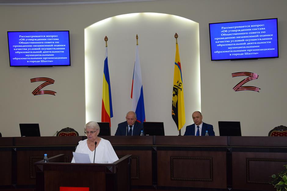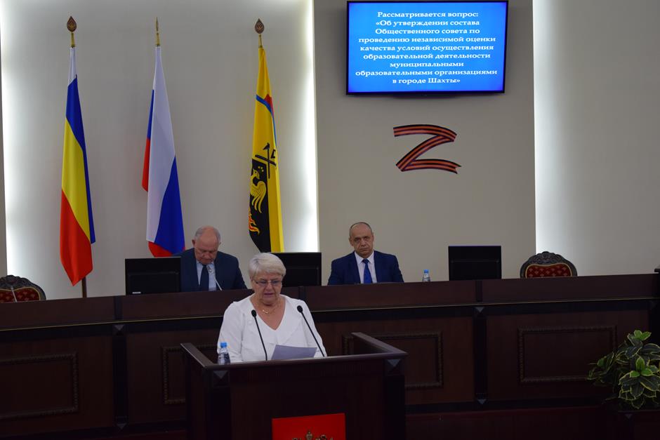 По вопросу №2 — «Об утверждении состава Общественного совета по проведению независимой оценки качества условий осуществления образовательной деятельности муниципальными образовательными организациями в городе Шахты» — выступила председатель комиссии Общественной палаты города Шахты по образованию, патриотическому воспитанию и молодежной политике Тамара Кадырова.
