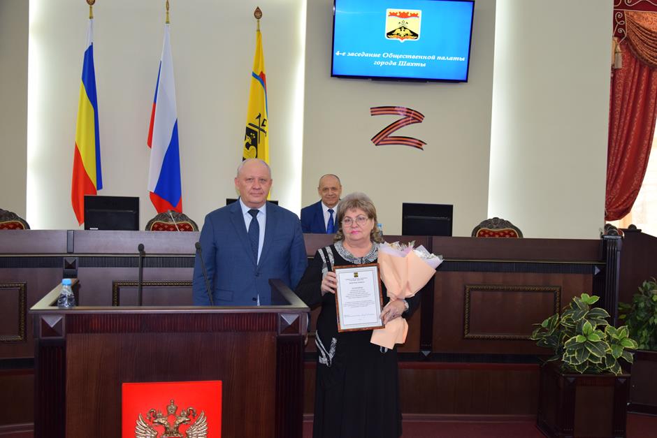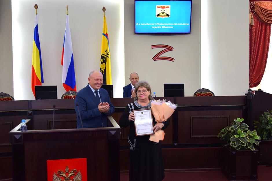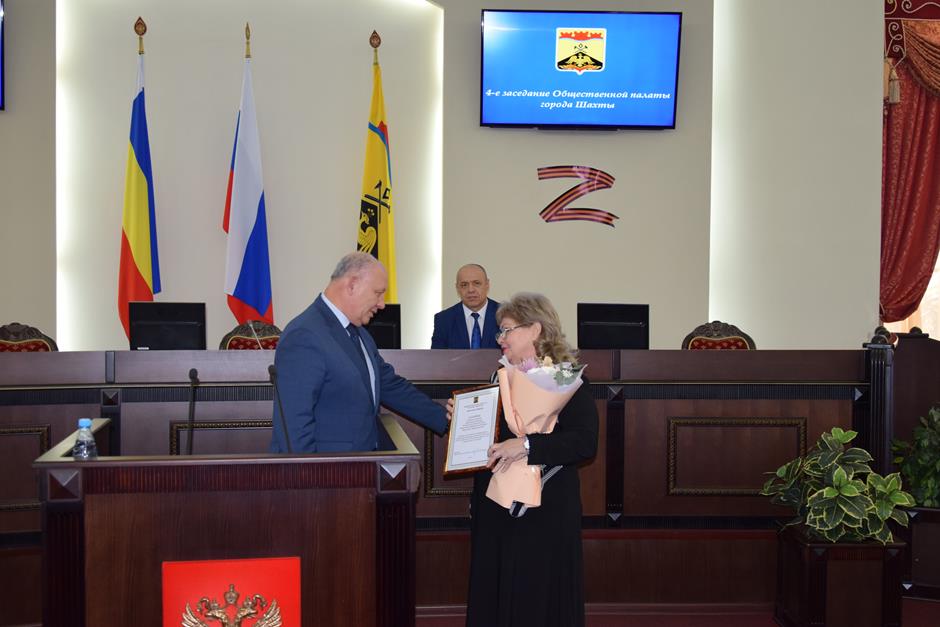 Заседание открыла процедура вручения Почетной грамоты Общественной палаты города Шахты. Награду, которой удостоен коллектив Шахтинской городской общественной организации Ростовской областной организации общероссийской общественной организации «Всероссийское общество инвалидов»( за активную, многолетнюю, плодотворную работу по защите прав, реабилитации, повышению качества жизни людей с ограниченными возможностями здоровья и в связи с празднованием 35-летия ВОИ), вручил руководителю Валентине Суховой председатель ОП Александр Скориков.