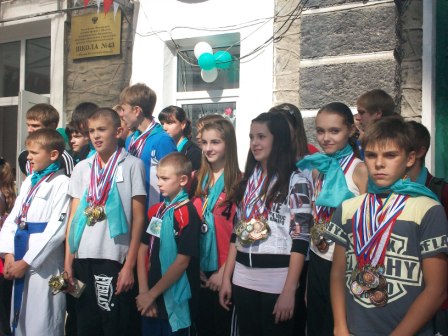 В этот день в гости к учащимся приехали депутат городской Думы города Шахты Стенякина Екатерина Петровна, Президент Федерации кик-боксинга Ростовской области, депутат городской Думы города Шахты Жадяев Евгений Николаевич, мастер спорта России, чемпион России по гиревому спорту Фоменко Александр. Учащиеся провели зарядку для всех участников праздника, спортсмены продемонстрировали свои медали и кубки. В ответ Фоменко Александр Анатольевич показал элементы своего выступления и призвал всех заниматься спортом. Громкими аплодисментами и пожеланиями победы в чемпионате России по гиревому спорту проводили ребята Александра, на который он отправился сразу по окончанию мероприятия.