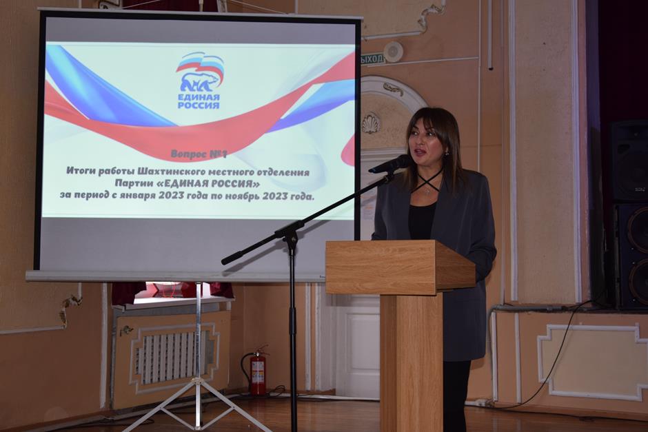На конференции ШМО ВПП «ЕДИНАЯ РОССИЯ» исполнительный секретарь Шахтинского местного отделения партии Эльвира Мусаева выступила с отчетом о деятельности ШМО за 2023 год, уделив внимание не только сделанному, но и обозначив перед коллегами задачи на новый период.