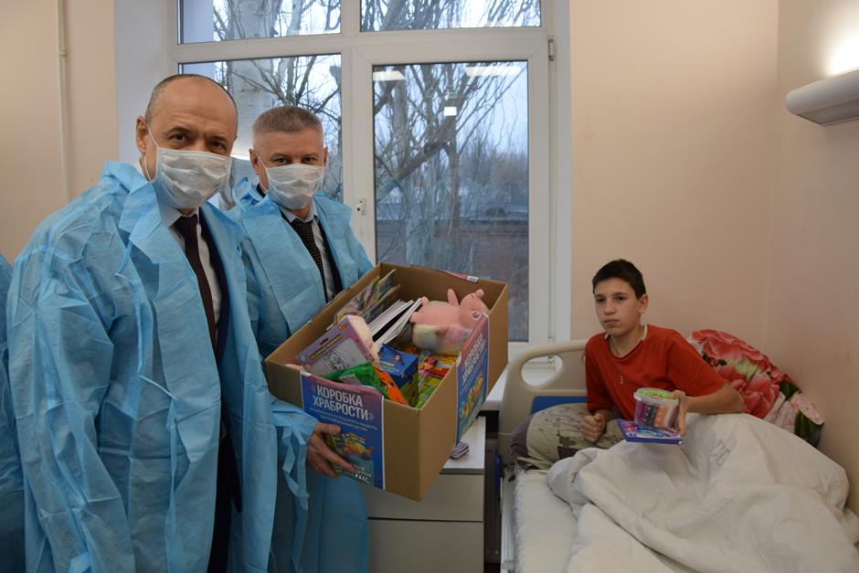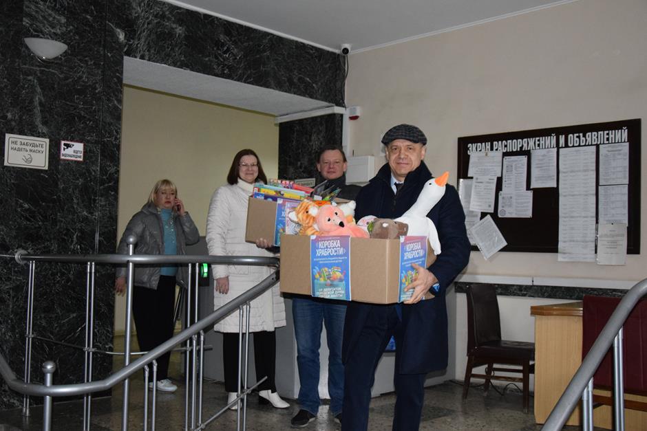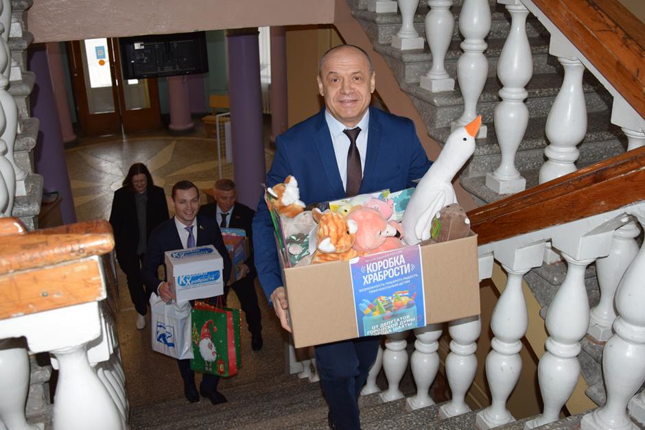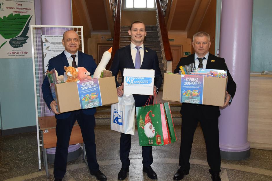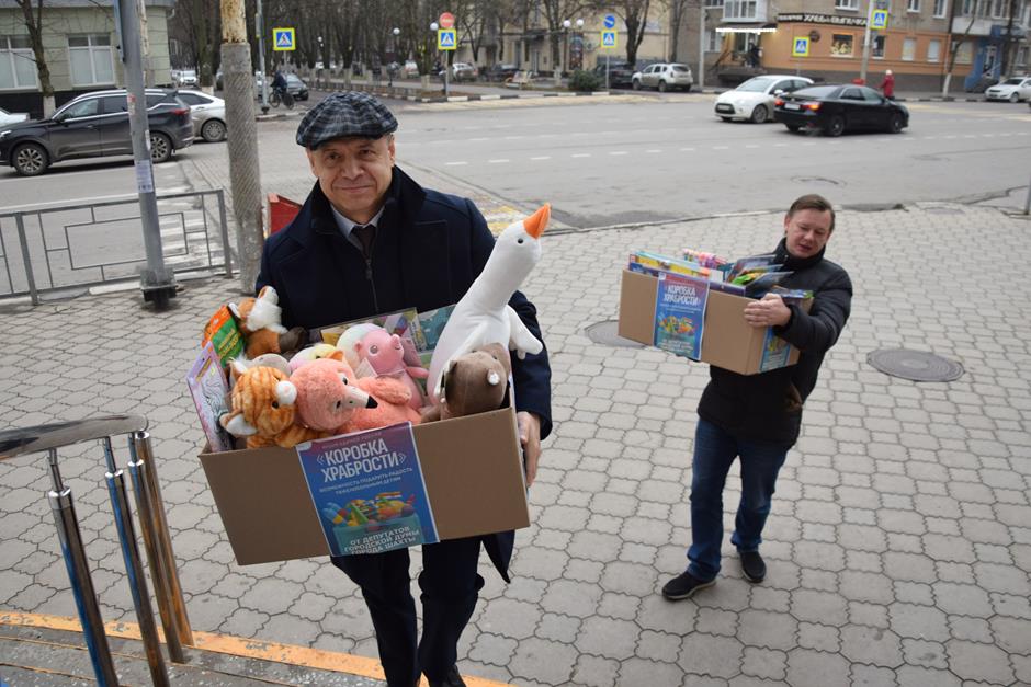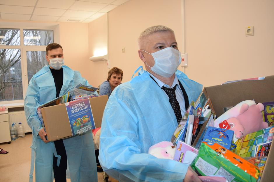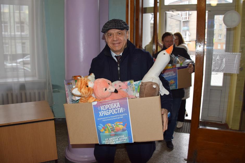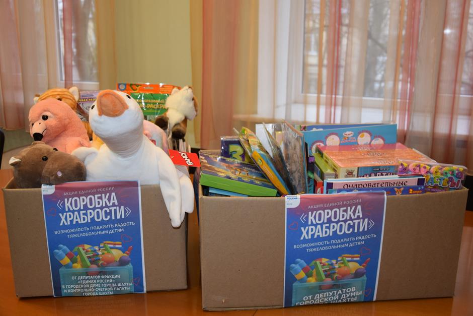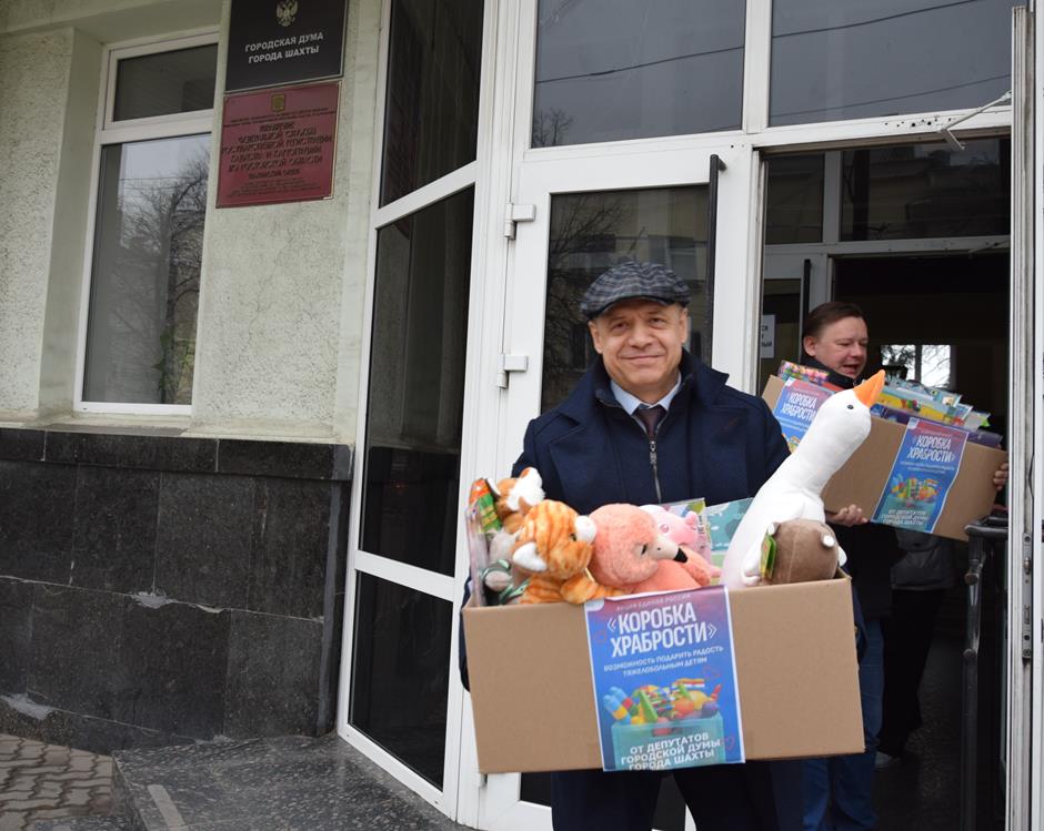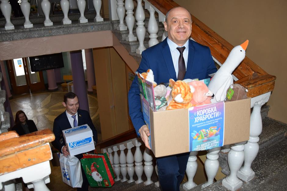 В рамках проведения партией «Единая Россия» Всероссийской благотворительной акции «Коробка храбрости» в городской Думе организовали сбор подарков для поддержки детей, проходящих длительное лечение в стационарных условиях. Вместе с донским парламентарием Аркадием Горцевским председатель городской Думы – глава города Шахты Константин Корнеев, руководитель депутатского объединения ВПП «ЕДИНАЯ РОССИЯ» в городской Думе города Шахты Виталий Фомин и депутат городской Думы Вадим Новоселов доставили «Коробку храбрости» в Детскую городскую больницу.