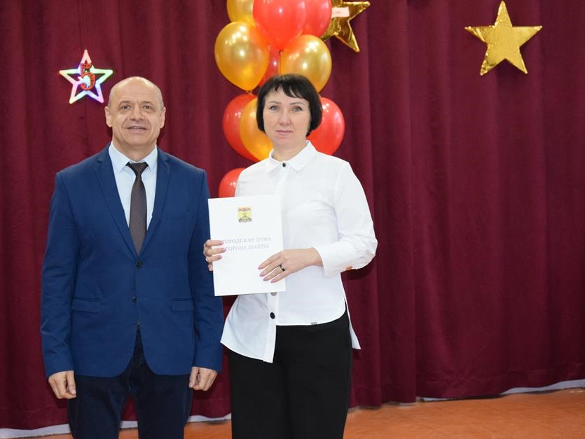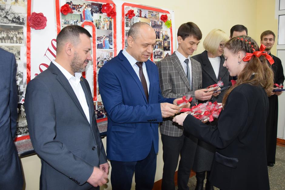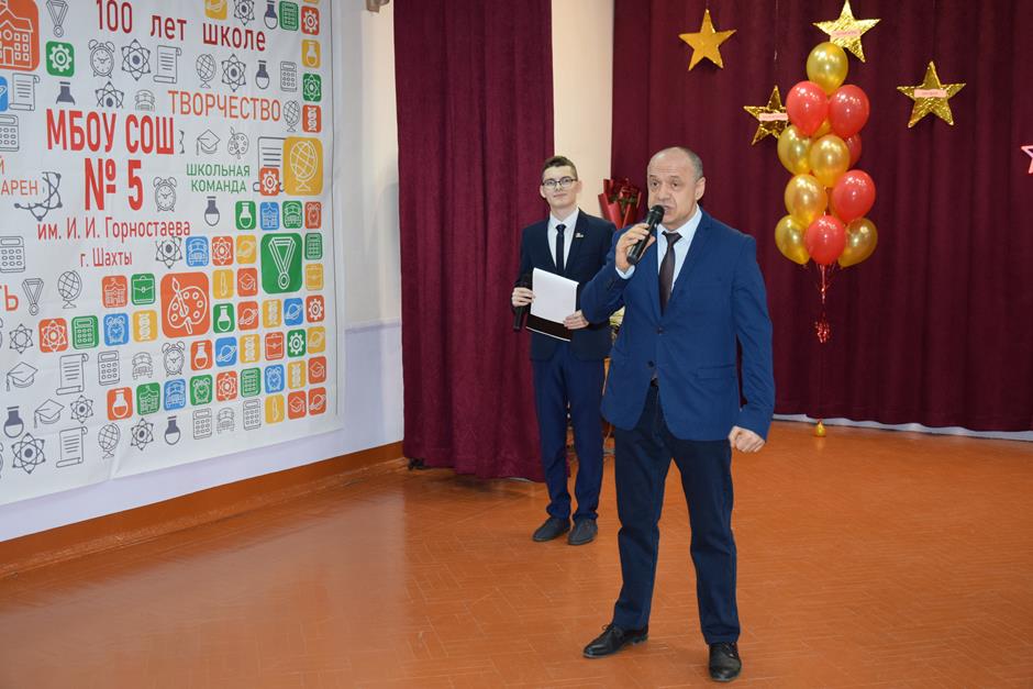 Коллектив школы №5 со 100-летием учреждения поздравил председатель городской Думы – глава города Шахты Константин Корнеев