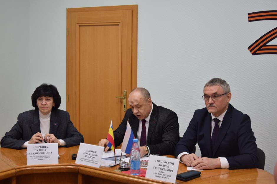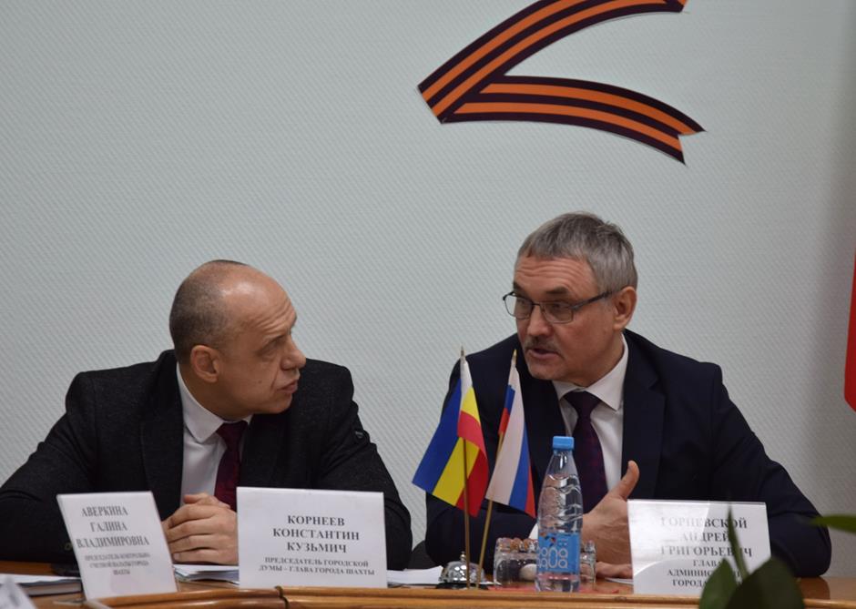 В заседании Совета городской Думы города Шахты приняли участие председатель городской Думы – глава города Шахты Константин Корнеев, Глава Администрации Андрей Горцевской, председатель Контрольно-счетной палаты города Галина Аверкина, заместитель главы Администрации Владимир Правдюк, председатели комитетов Думы.