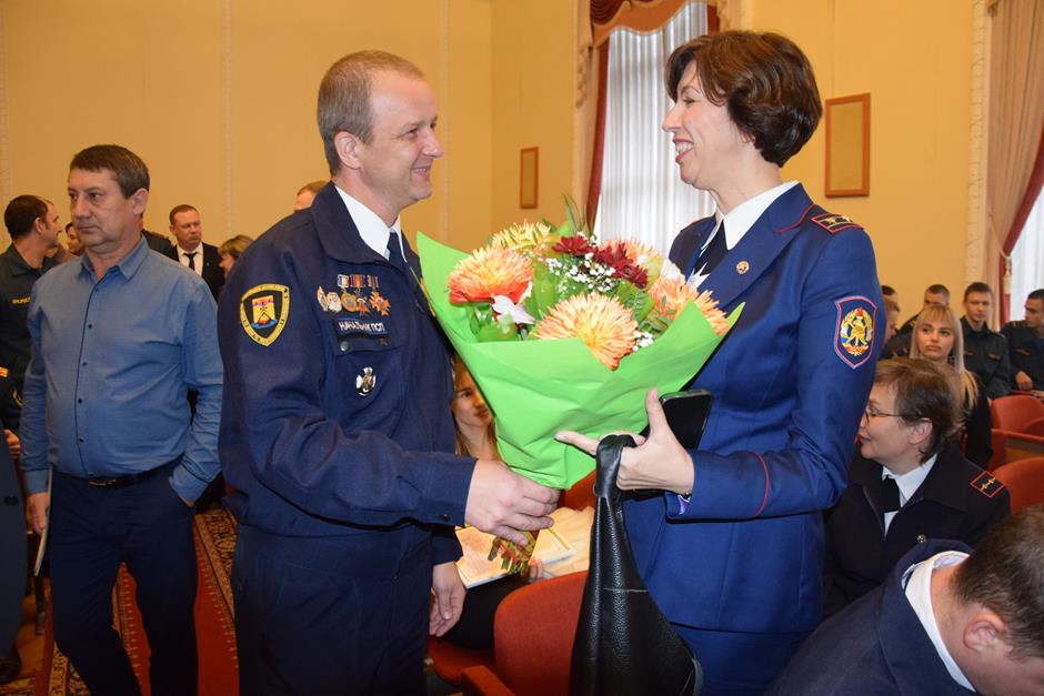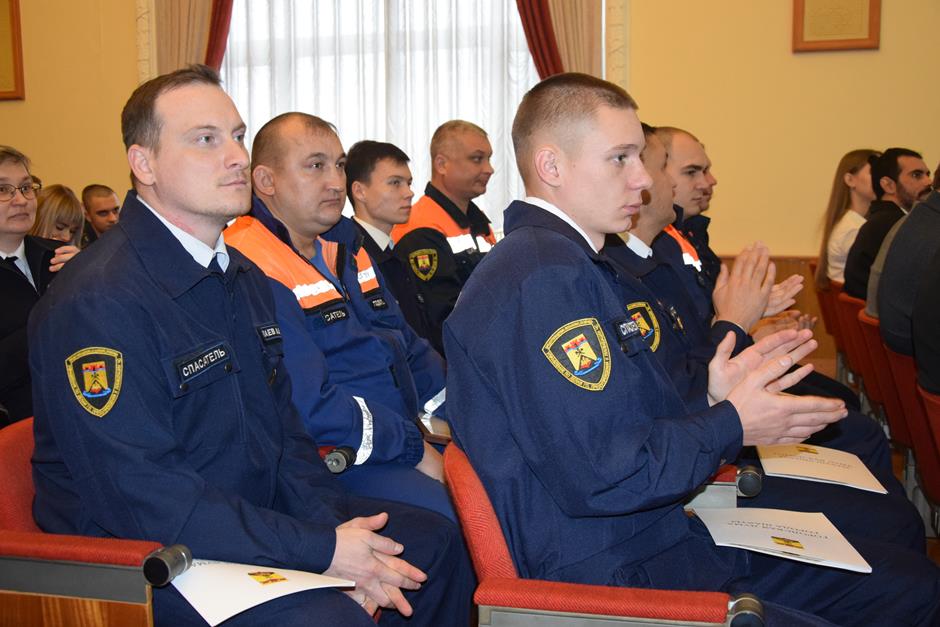 Мужественных, смелых и отважных сотрудников МЧС чествовали в большом зале Администрации города — с благодарностью за их самоотверженный труд и преданность выбранному делу.