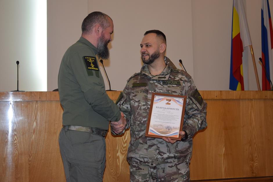 — Виктор Лукьянчиков — командир отделения, есаул — за плодотворную работу и личный вклад в возрождение казачества и становление его на государственную службу, активное участие в работе по комплектованию мобилизационного людского резерва среди казачества.
