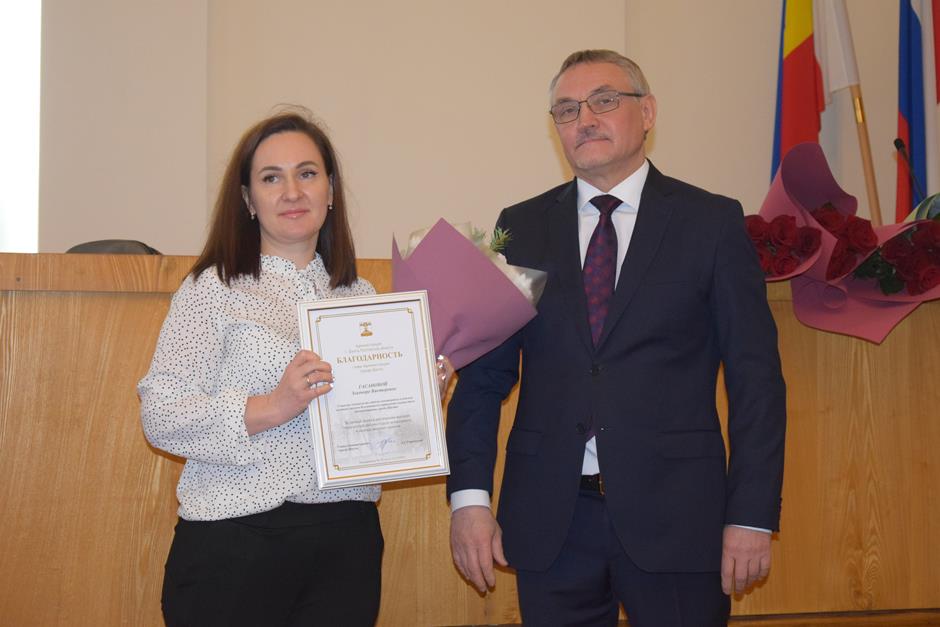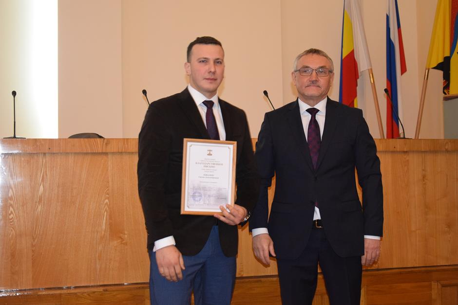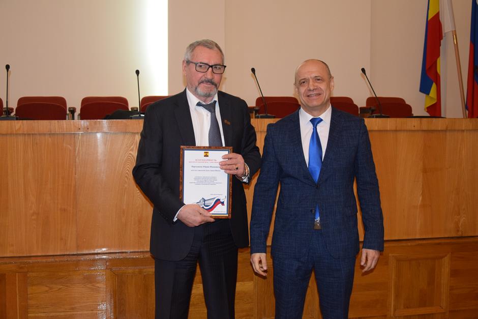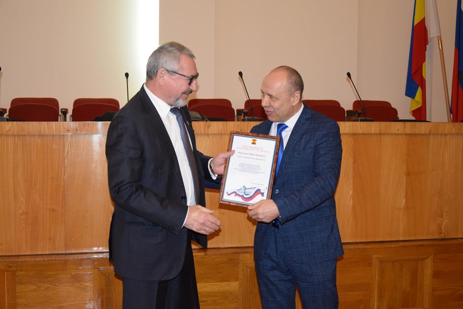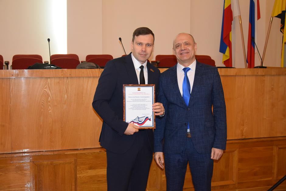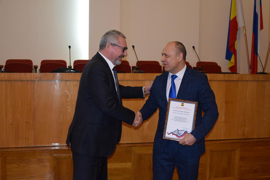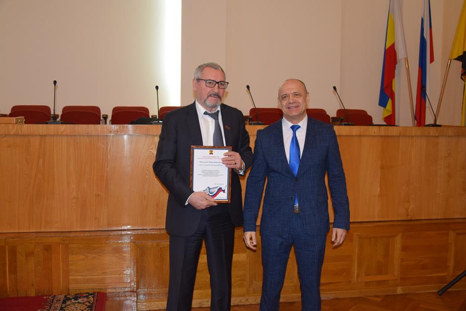 Поощрения депутатского корпуса вручил председатель городской Думы — глава города Шахты Константин Корнеев.