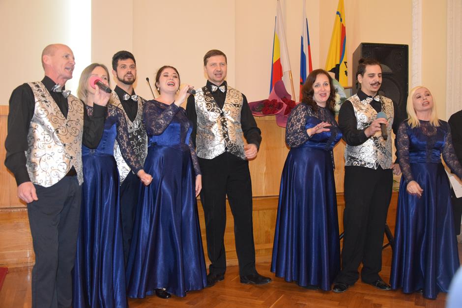 Торжественную церемонию украсили выступления артистов муниципального ансамбля песни и пляски «Надежда» под руководством заслуженного работника культуры Надежды Тихоновой. А завершилась программа поздравлениями Деда Мороза и Снегурочки, пришедшими на предпраздничную встречу с искренними и добрыми пожеланиями.