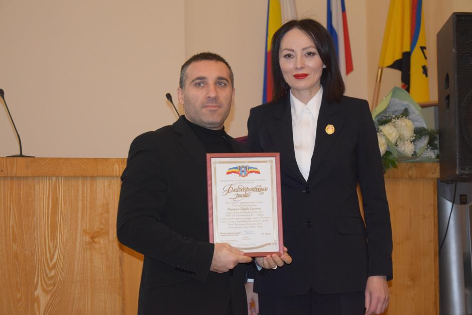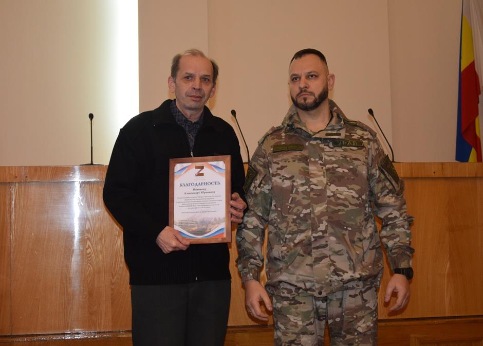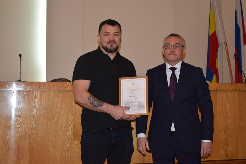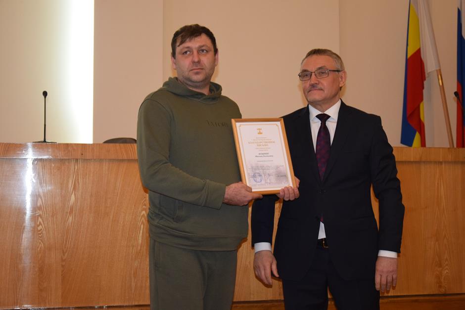Благодарственными письмами городской Думы города Шахты награждены: главный инспектор Контрольно-счетной палаты города Наталья Аламова — за многолетний, добросовестный труд, профессионализм, значительный личный вклад в решение задач, поставленных перед КСП , а также индивидуальные предприниматели Ашот Симонян и Сергей Абызов — за активную спонсорскую деятельность в подготовке и проведении массового мероприятия – празднования Нового года, приобретении новогодних сладких подарков для детей участников специальной военной операции и детей, проживающих в пункте временного размещения.