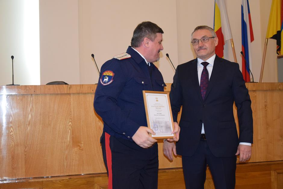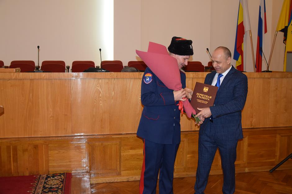 Почетной грамоты городской Думы города Шахты удостоены представители казачьей дружины Шахтинского городского казачьего общества «Александровск-Грушевское»: