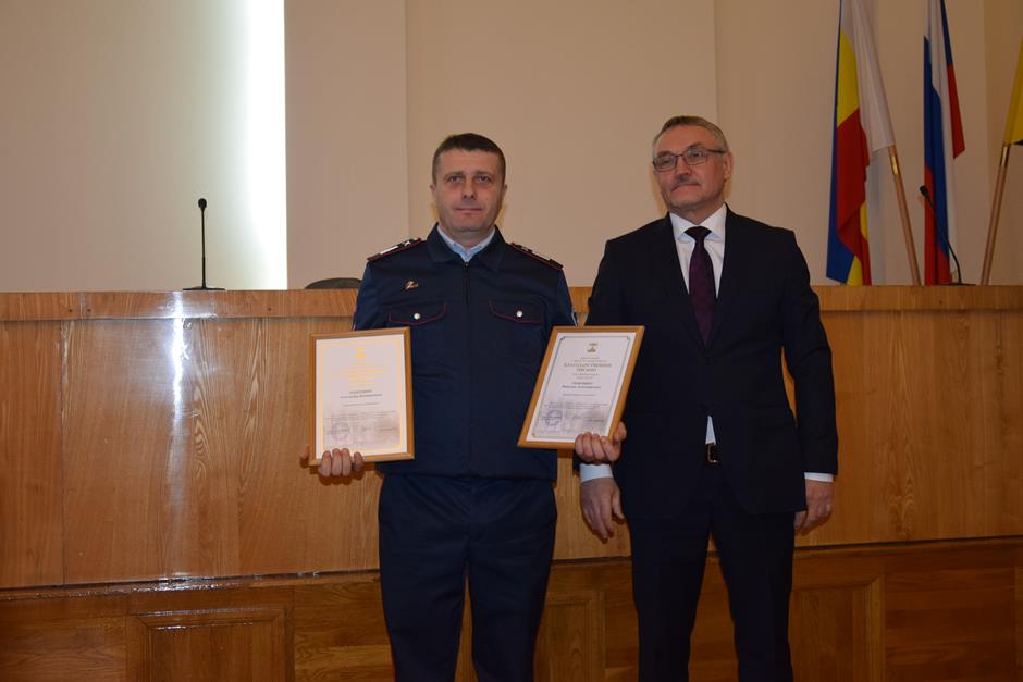За высокие результаты в служебной деятельности, добросовестное выполнение особо сложных и важных поставленных руководством задач поощрения Общественной палаты города Шахты получили представители казачьей дружины Шахтинского городского казачьего общества «Александровск-Грушевское» Игорь Оныщенко, Александр Дегтярев и Валерий Сухарев.
