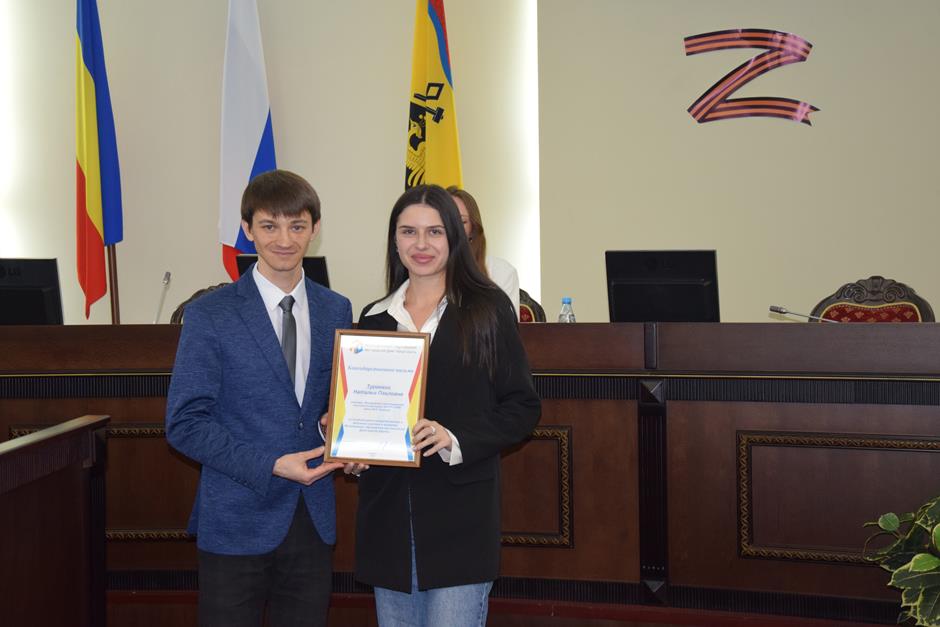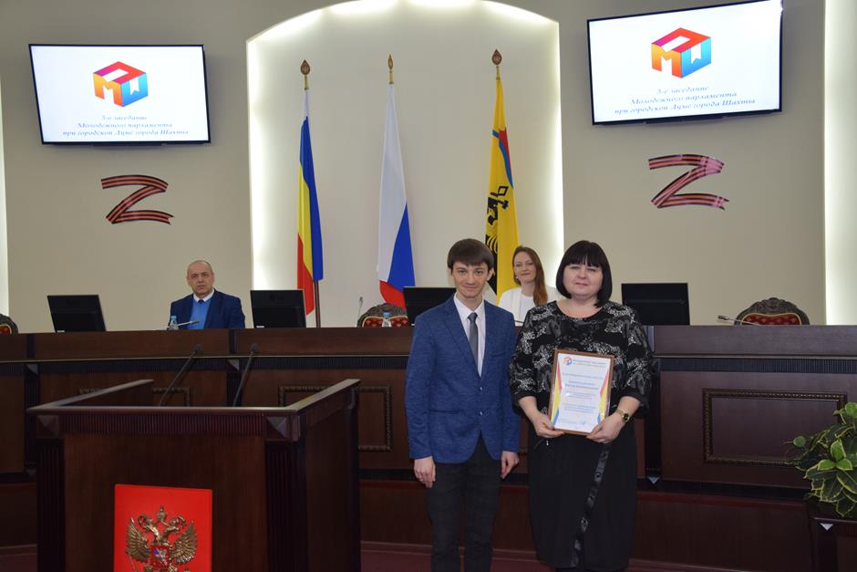 За плодотворное сотрудничество и активное участие в проектах Молодежного парламента при городской Думе города Шахты Благодарственными письмами МПШ отмечены: