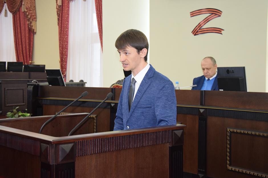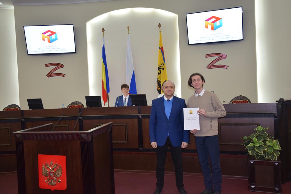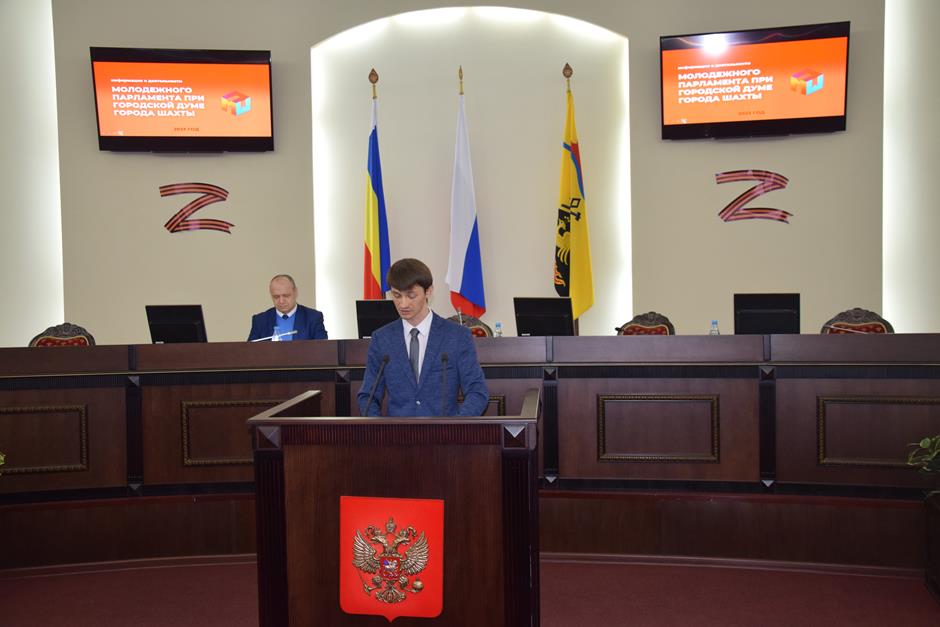 С «Отчётом о результатах деятельности Молодежного парламента при городской Думе города Шахты за 2023 год» (вопрос №1) выступил председатель МПШ Андрей Ткачев.