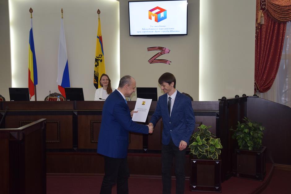 В рамках заседания состоялась церемония подписания соглашения о сотрудничестве между Шахтинским местным отделением Общероссийского общественно-государственного движения детей и молодежи «Движение Первых» и Молодежным парламентом при городской Думе города Шахты. Документ закрепляет основные формы взаимодействия и развития основных направлений деятельности РДДМ и МПШ в сфере популяризации деятельности органов молодежного самоуправления по вопросам организации и проведения массовых мероприятий в рамках государственной молодежной политики.
