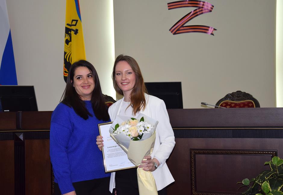 — Белла Севостьянова – директор-главный редактор ООО «Редакция газеты «Шахтинские известия» (награду получила заместитель директора Елена Савкова).