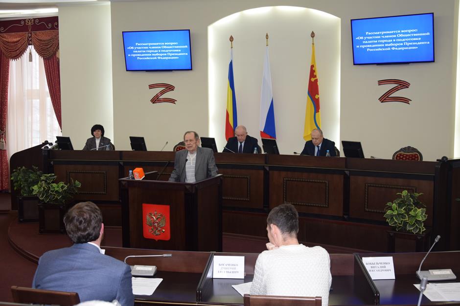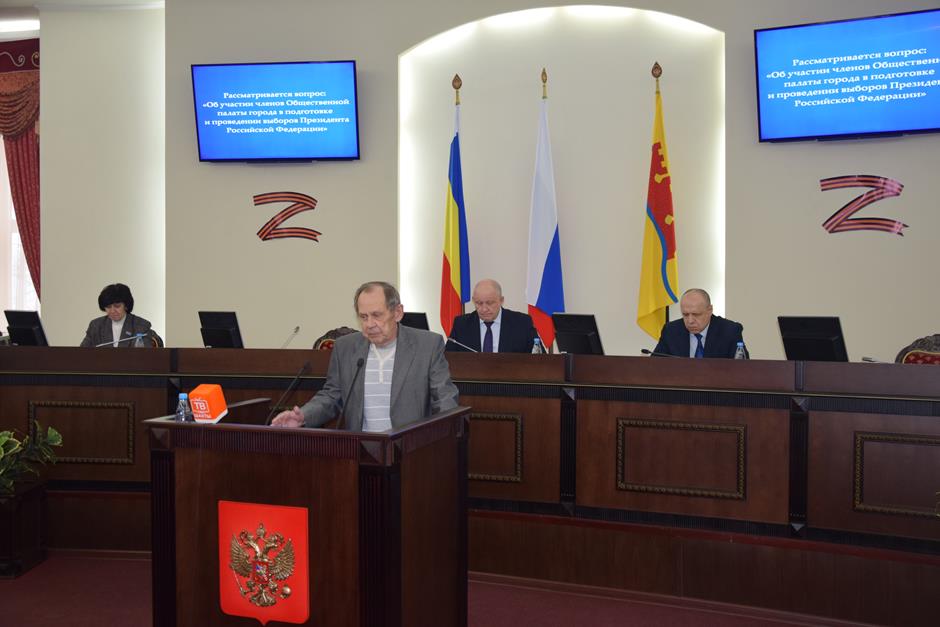 По вопросу №2 с информацией об участии членов Общественной палаты города в подготовке и проведении выборов Президента Российской Федерации 15–17 марта 2024-го выступил заместитель председателя ОП, председатель комиссии по местному самоуправлению, развитию институтов гражданского общества и СМИ Владимир Жемойтель.