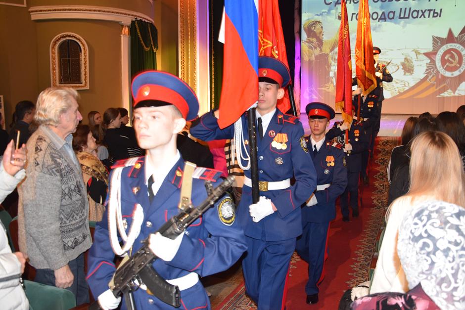 Открыли программу, посвященную 81-ой годовщине освобождения города Шахты от немецко-фашистских захватчиков, воспитанники почетного караула «Пост № 1» с портретами «Бессмертного полка». Шахтинцы помнят и чтут подвиги солдат-освободителей – это священная обязанность наследников Великой Победы.