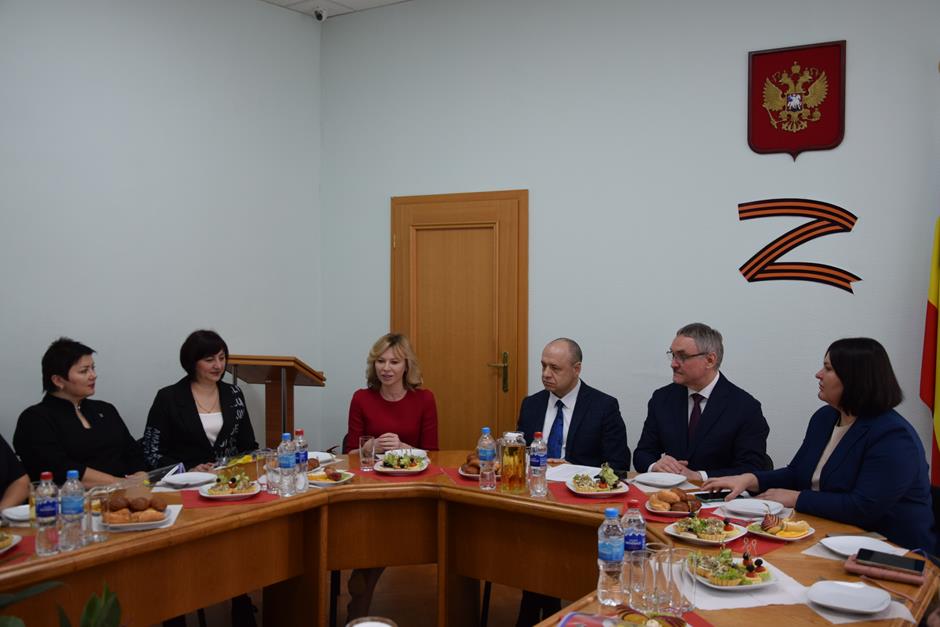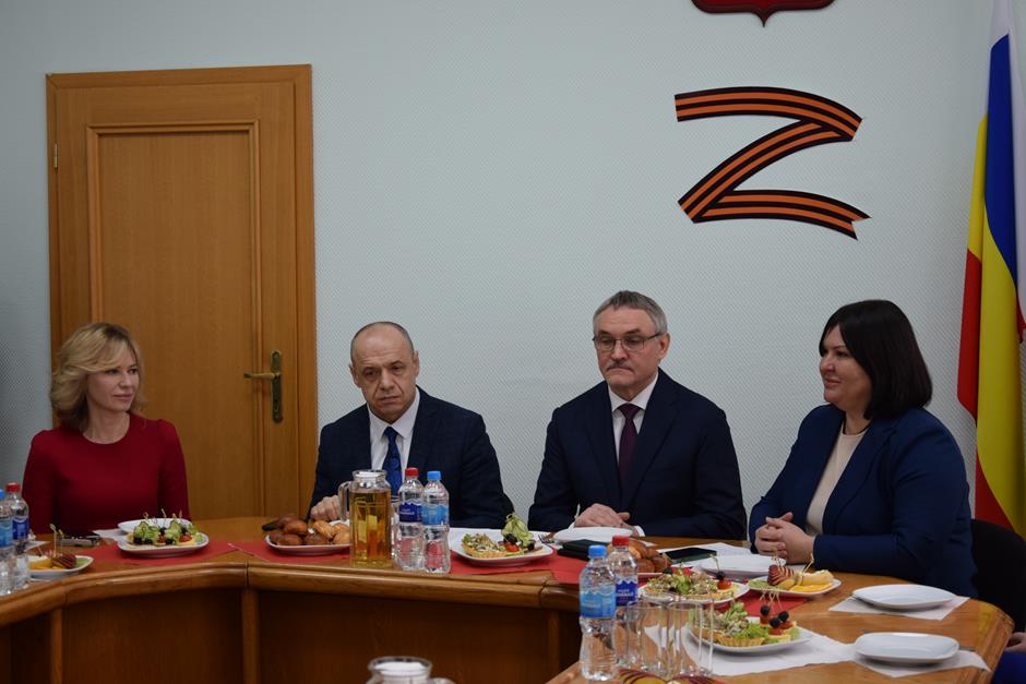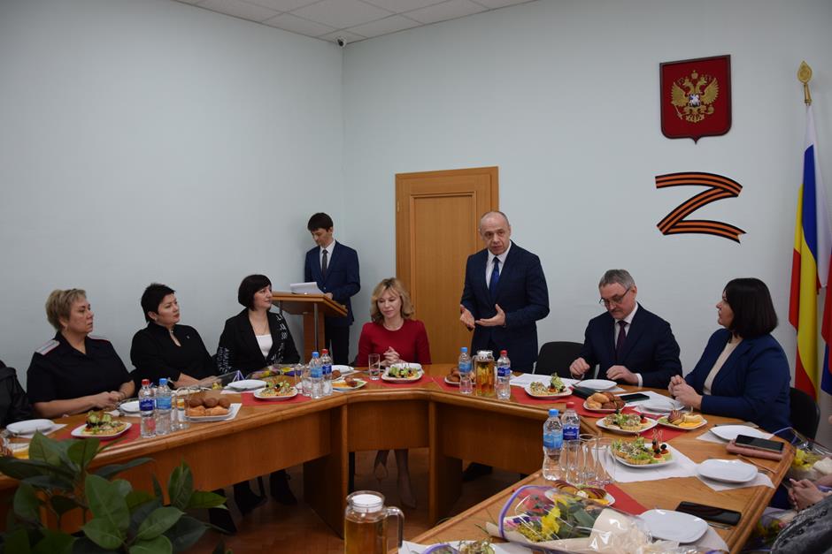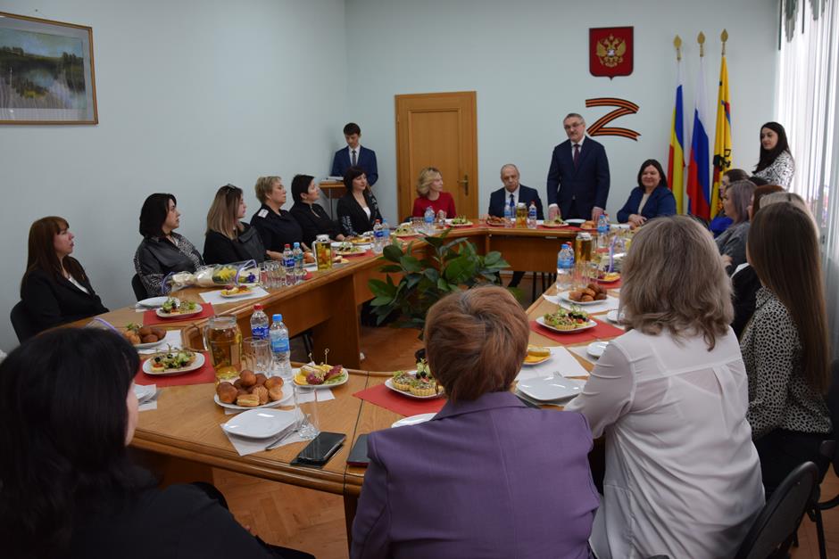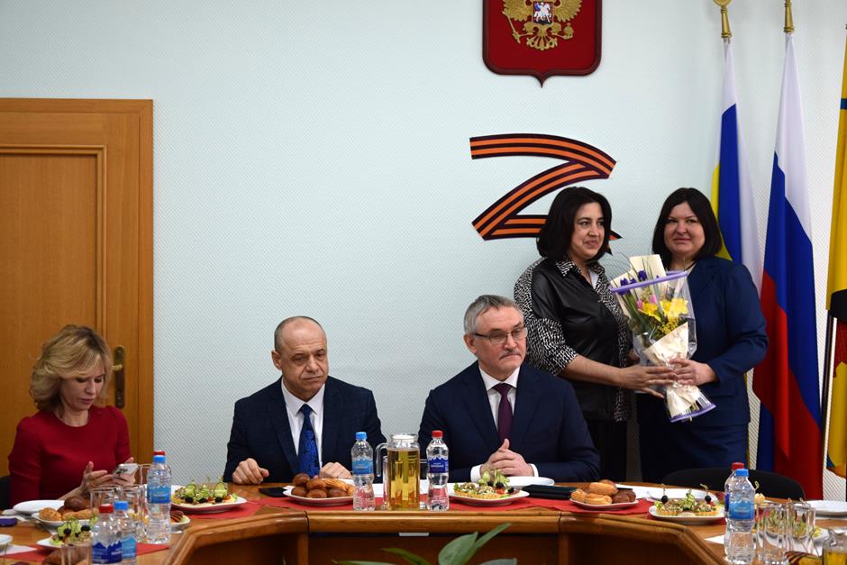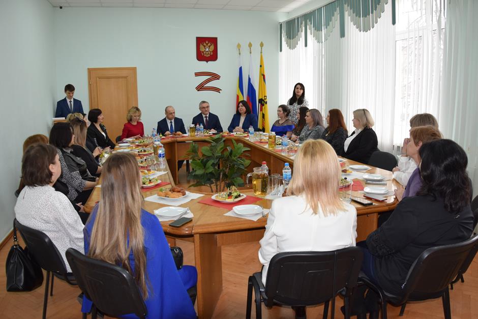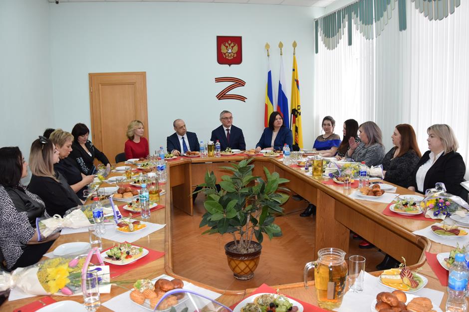 Встреча с представительницами надежного тыла защитников Отечества, выполняющих боевые задачи в зоне специальной военной операции — женами и матерями участников СВО, руководителями учреждений и волонтерами, оказывающими поддержку военнослужащим и их семьям — состоялась в стенах городской Думы города Шахты.