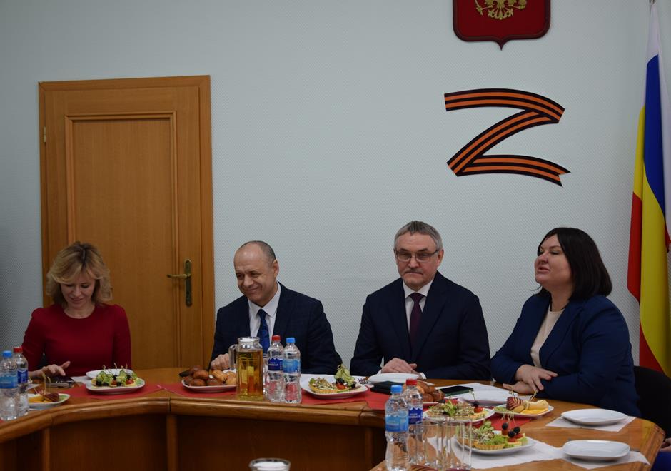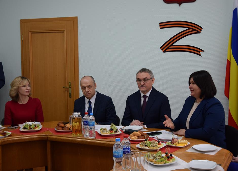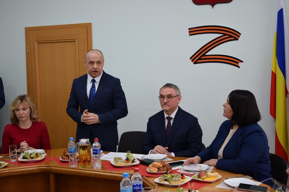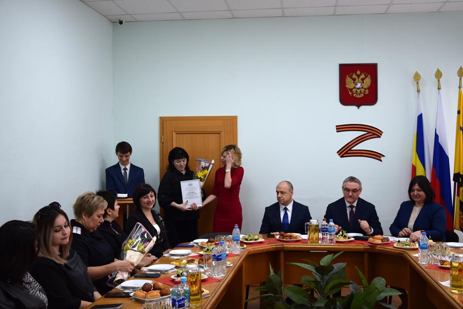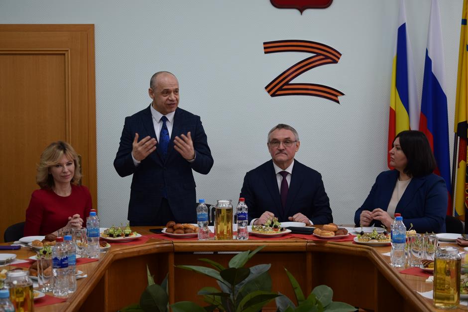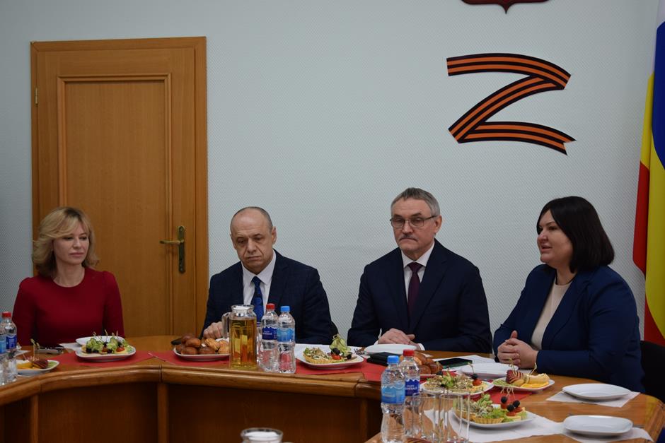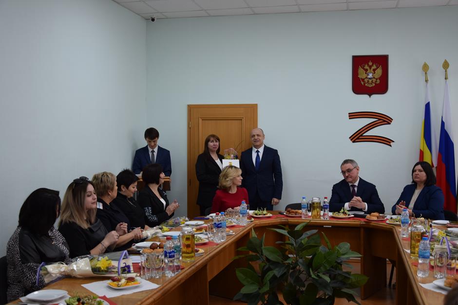 Встреча с представительницами надежного тыла защитников Отечества, выполняющих боевые задачи в зоне специальной военной операции — женами и матерями участников СВО, руководителями учреждений и волонтерами, оказывающими поддержку военнослужащим и их семьям — состоялась в стенах городской Думы города Шахты.