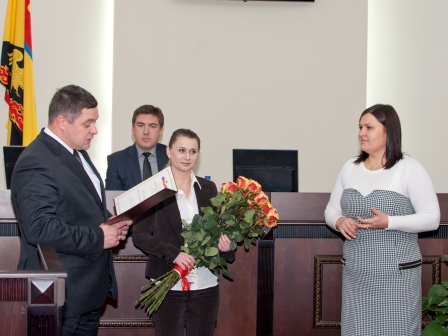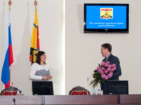 Заседание началось с вручения председателем городской Думы И.А.Жуковой и мэром Д.И.Станиславовым Почётных грамот и денежных премий достойным горожанам города: И.П.Стуровой – директору школы №38 (за высокопрофессиональный долголетний труд, большой личный вклад в развитие образования в городе Шахты, воспитание нравственности и патриотизма у подрастающего поколения, активную гражданскую позицию), И.В.Лепской – заведующей детской библиотекой им. А.Лиханова (за плодотворную, творческую работу, организаторские способности, высокую квалификацию, профессионализм и в связи с 60-летием библиотеки), Ю.И.Патрышеву – директору ЗАО «Шахтинский завод горно-шахтного оборудования» (за большой личный вклад в создание и развитие стабильно работающего предприятия, обеспечение специалистов города новыми рабочими местами, социальными гарантиями, благотворительную деятельность, личный авторитет успешного руководителя, в связи с 10-летием предприятия и 60-летием со дня рождения), Г.С.Мельниковой – директору школы №6 (за многолетнюю плодотворную творческую работу, организаторские способности при руководстве высоко — профессиональным педагогическим коллективом, признанным лидером в воспитании нового поколения и в связи с 75-летним юбилеем со дня основания учреждения).