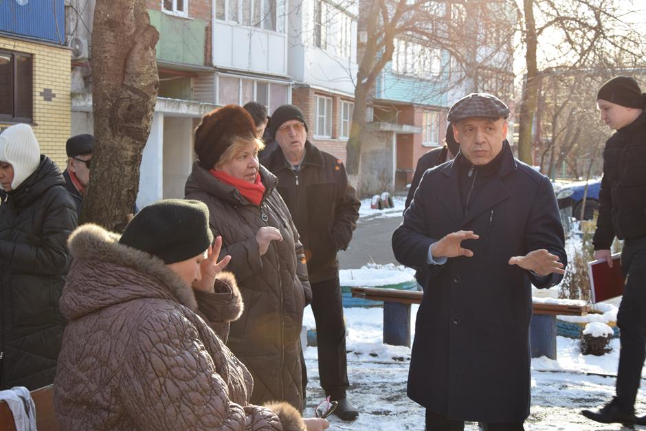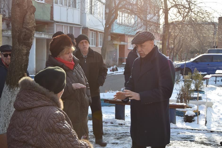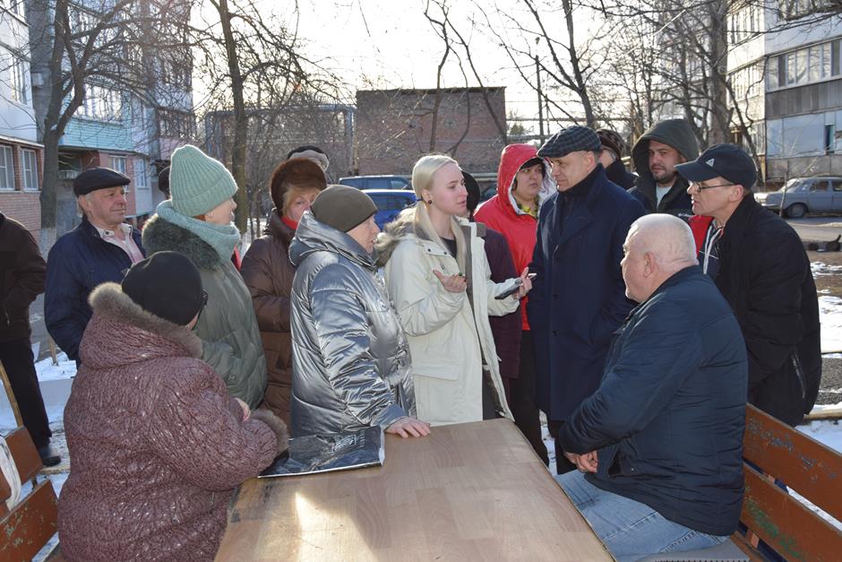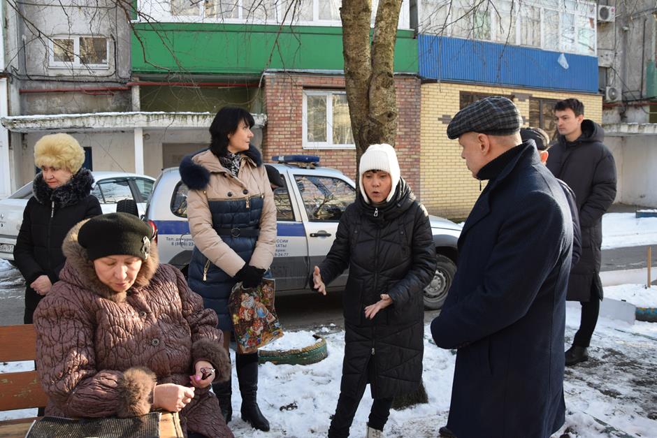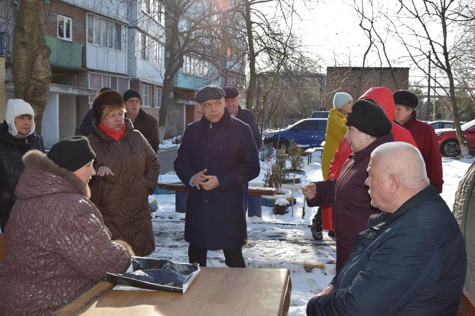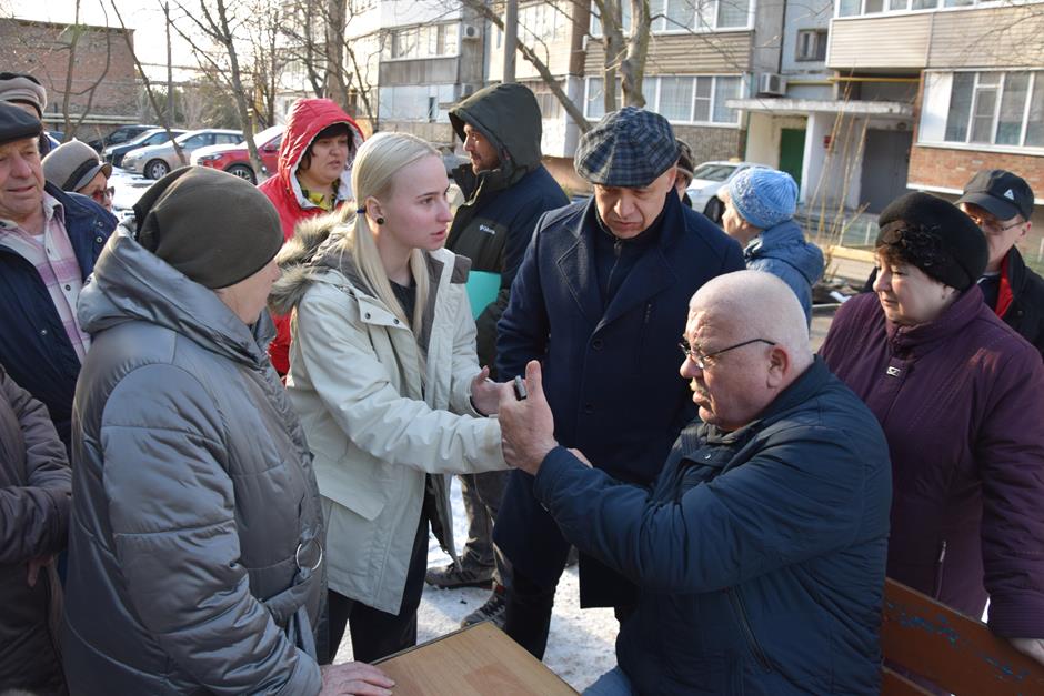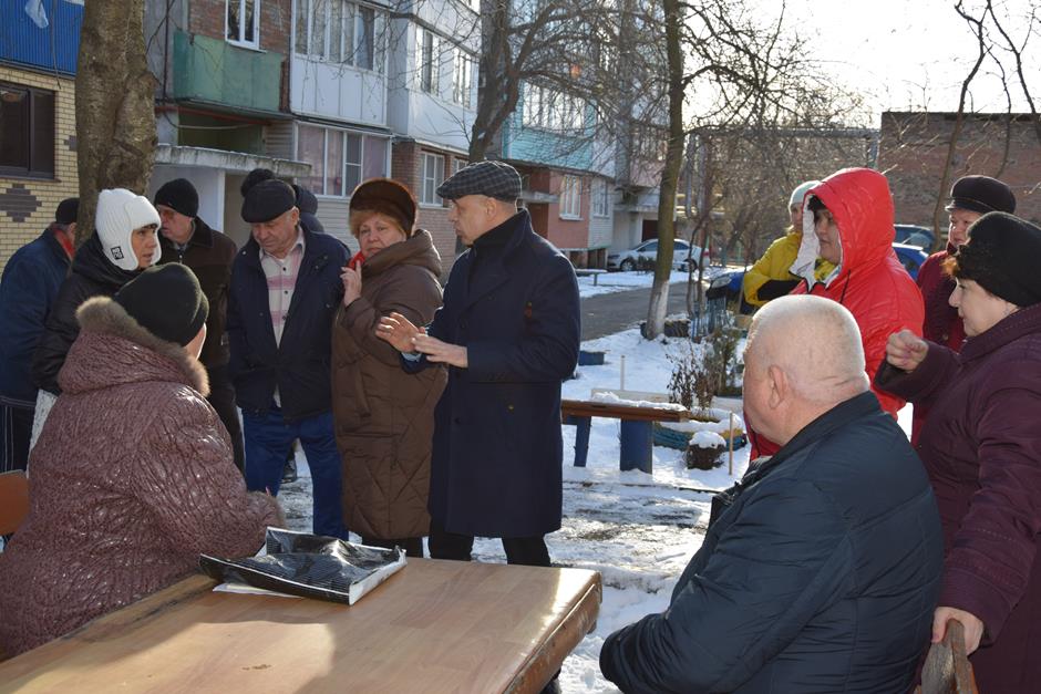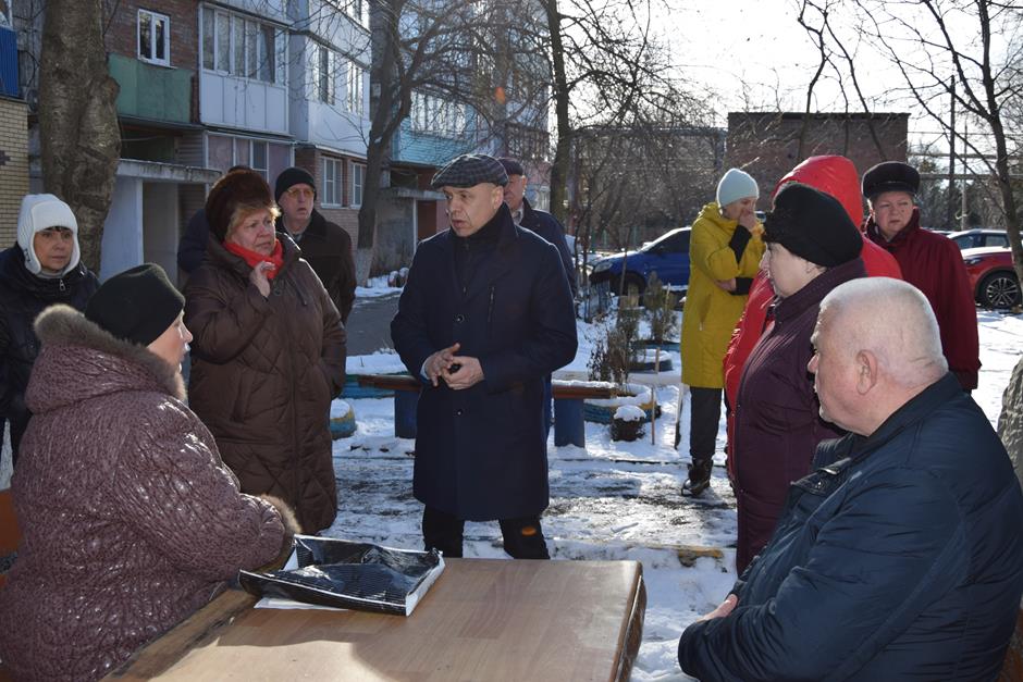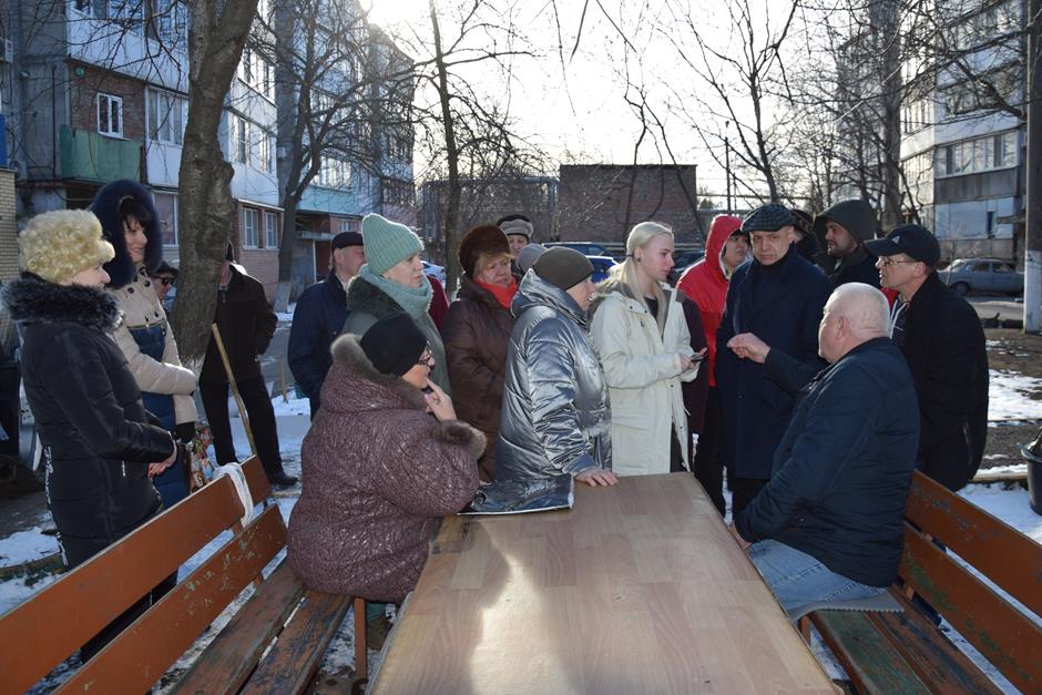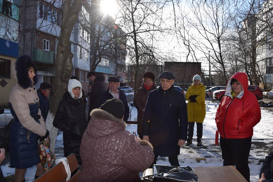 Председатель городской Думы — глава города Шахты Константин Корнеев провел выездную встречу с жителями домов №№ 61,65 по Красинской и Азовской, 21а