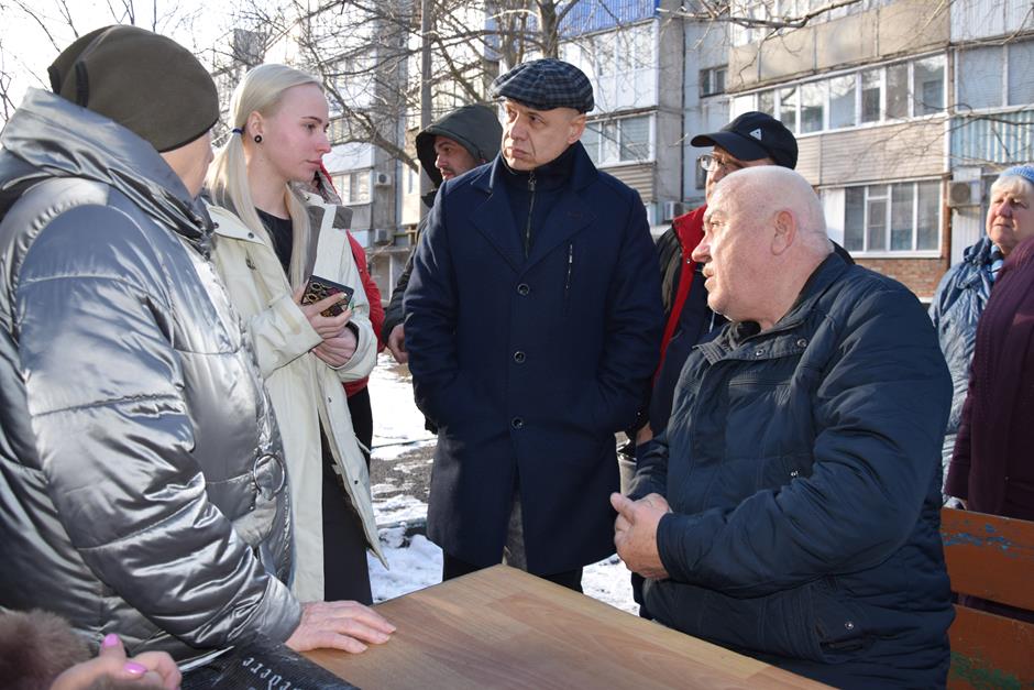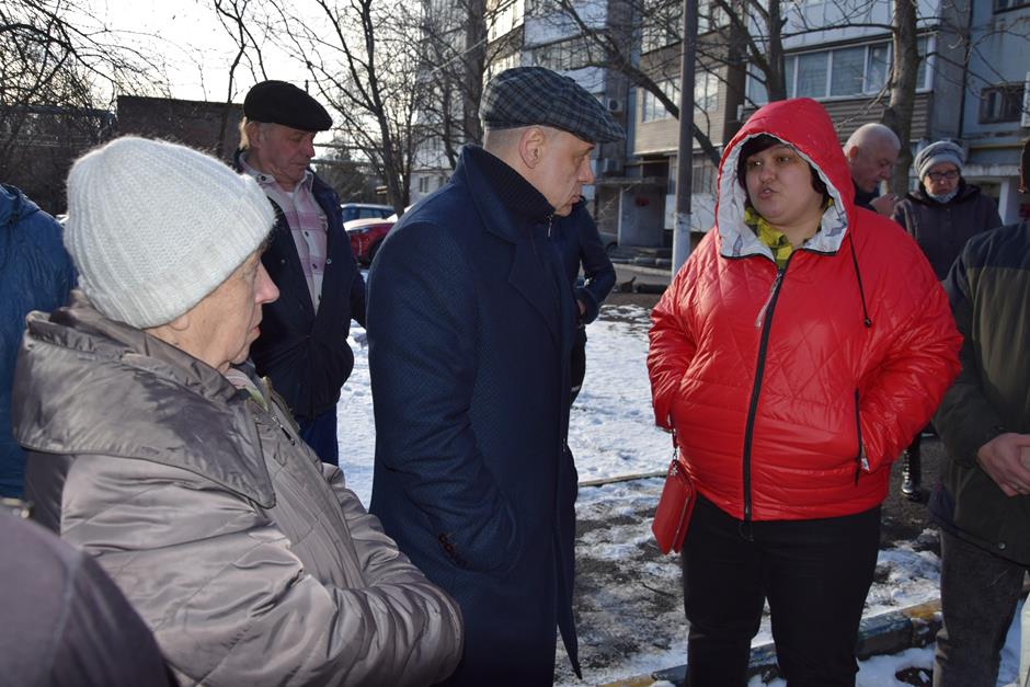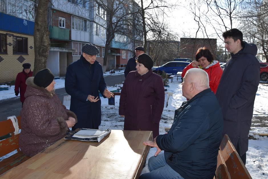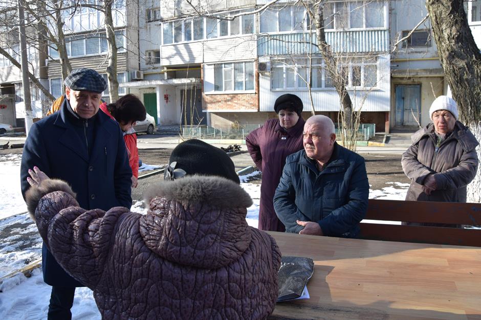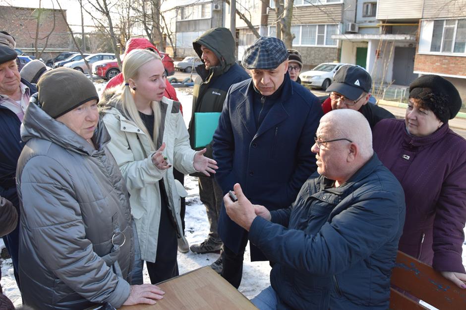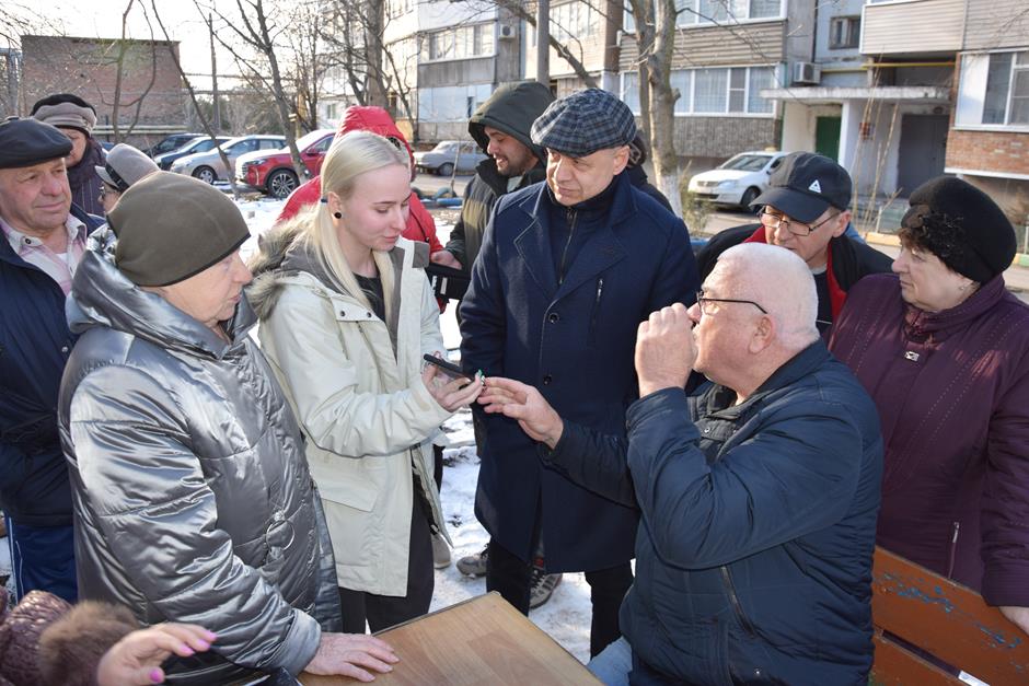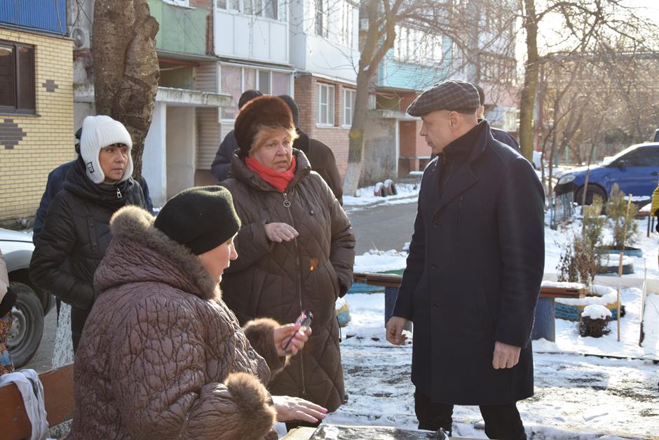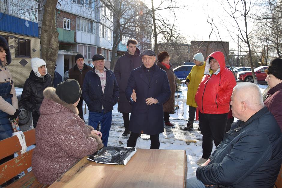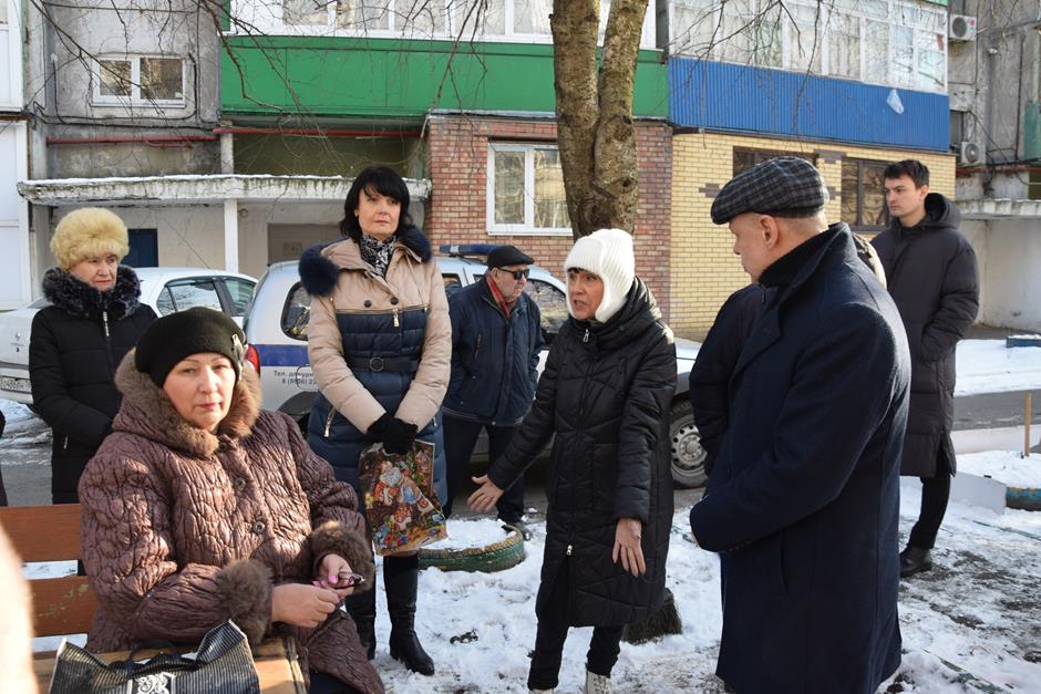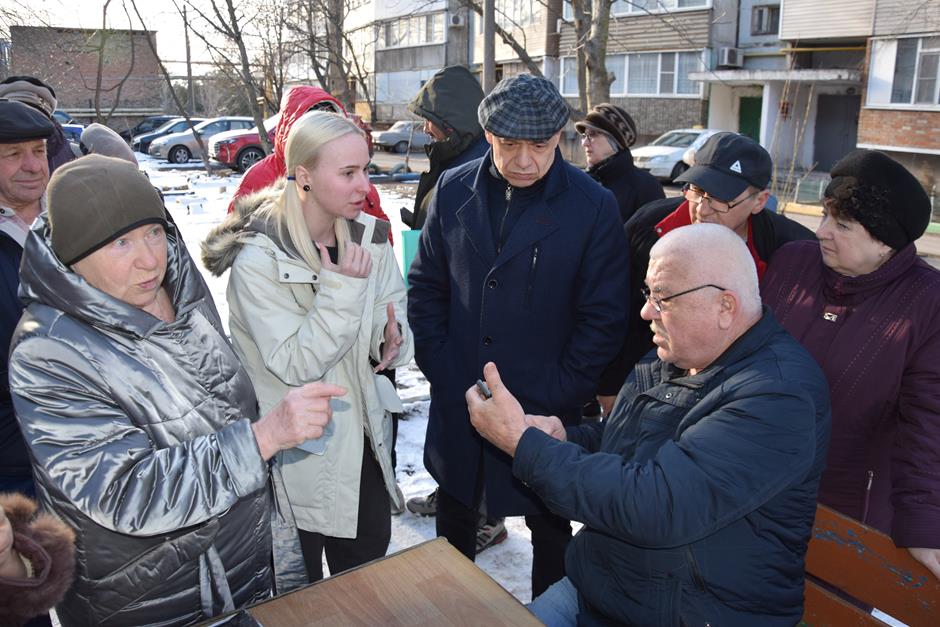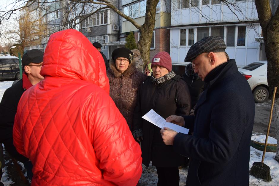 Председатель городской Думы — глава города Шахты Константин Корнеев провел выездную встречу с жителями домов №№ 61,65 по Красинской и Азовской, 21а