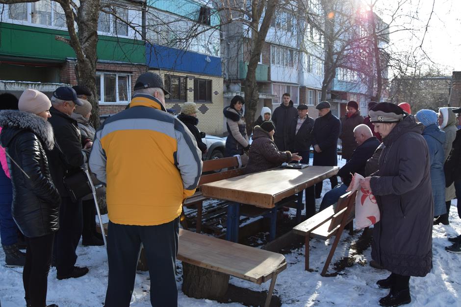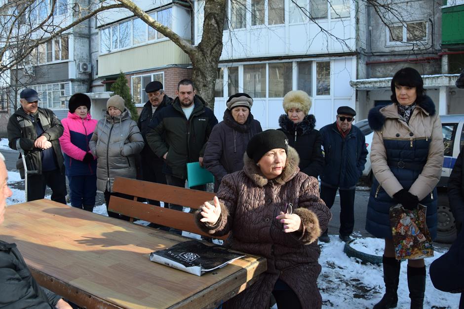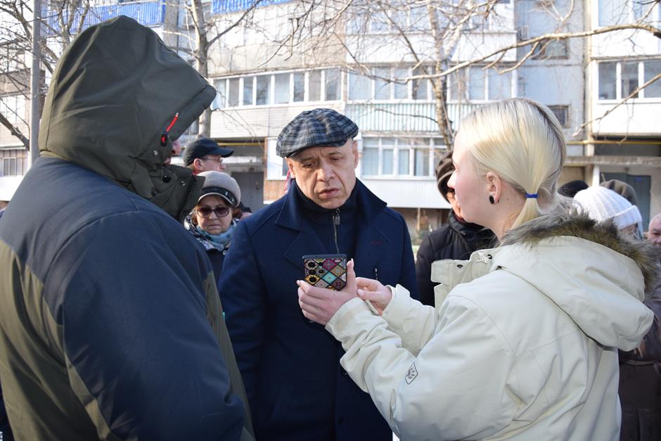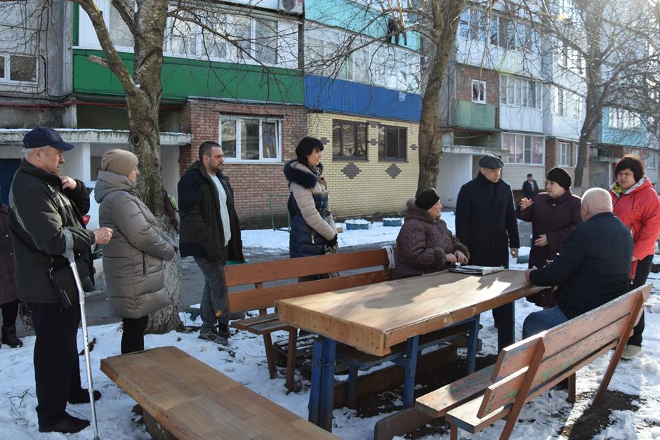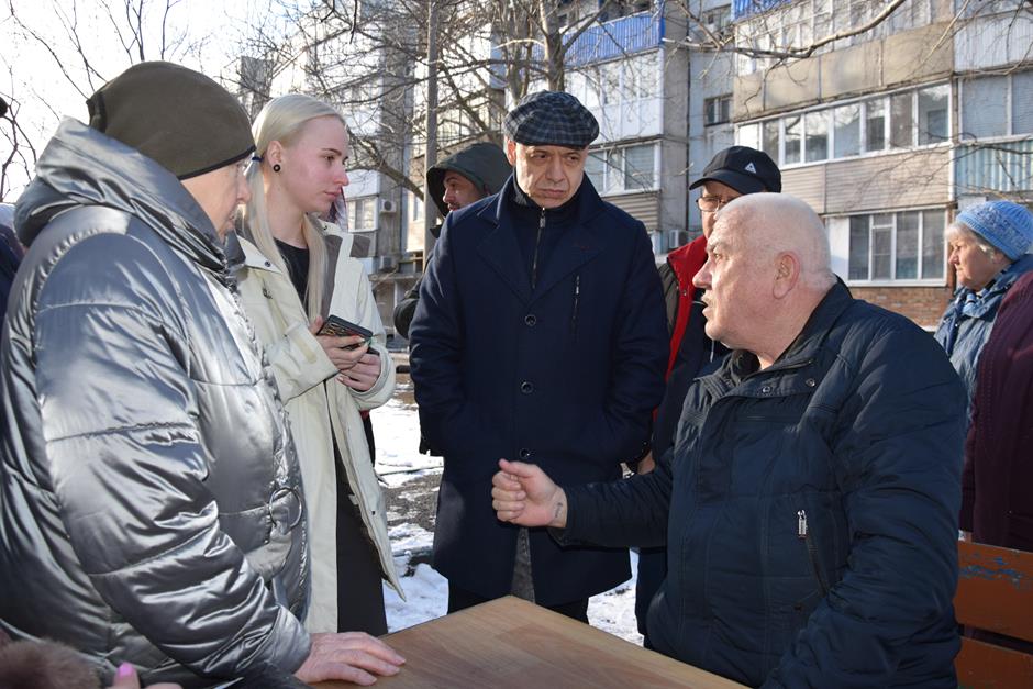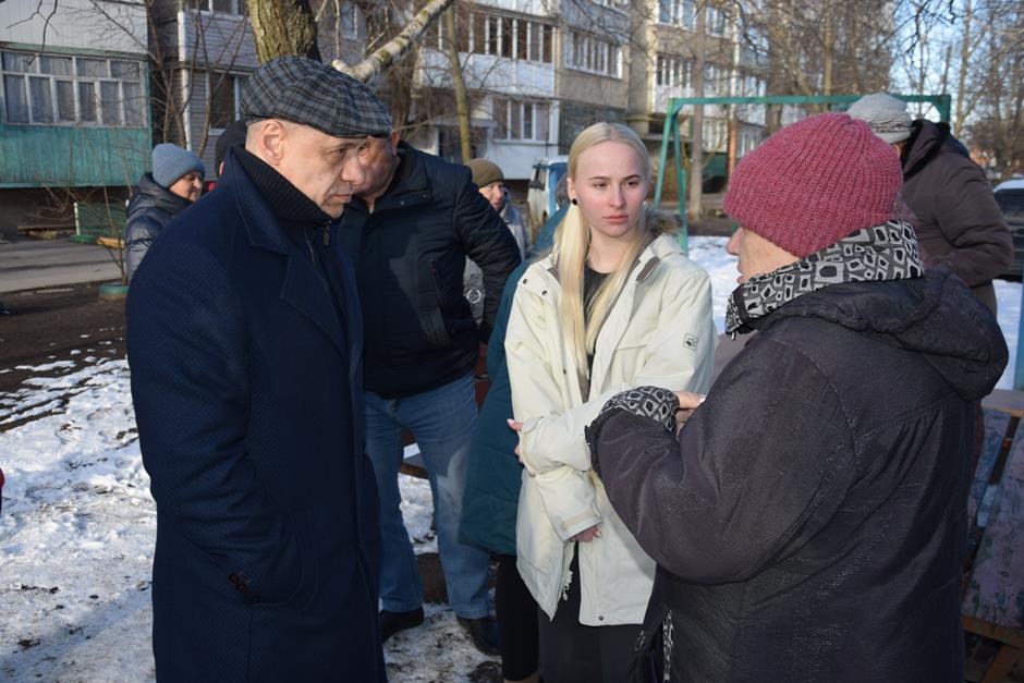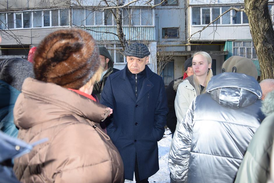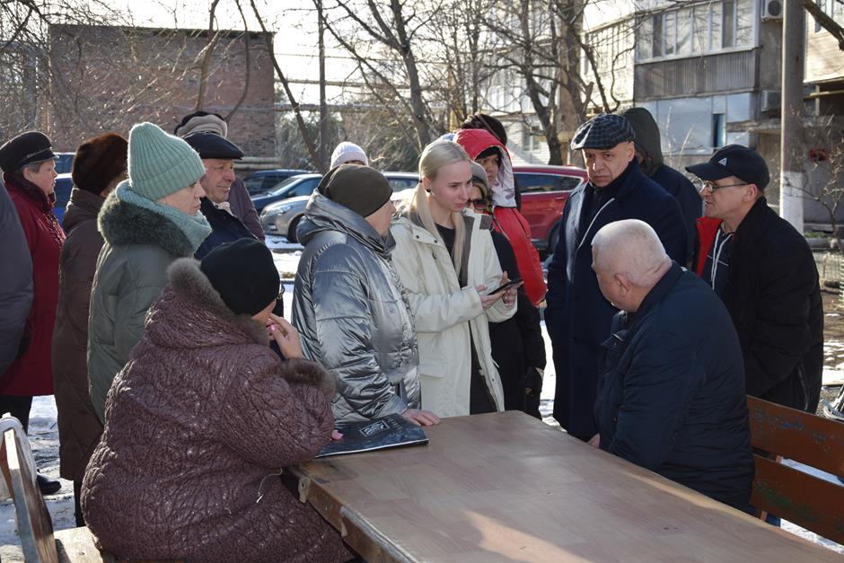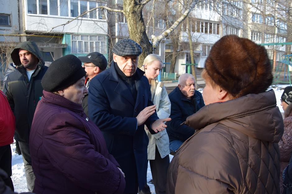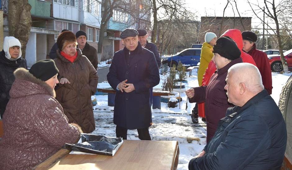Председатель городской Думы — глава города Шахты Константин Корнеев провел выездную встречу с жителями домов №№ 61,65 по Красинской и Азовской, 21а