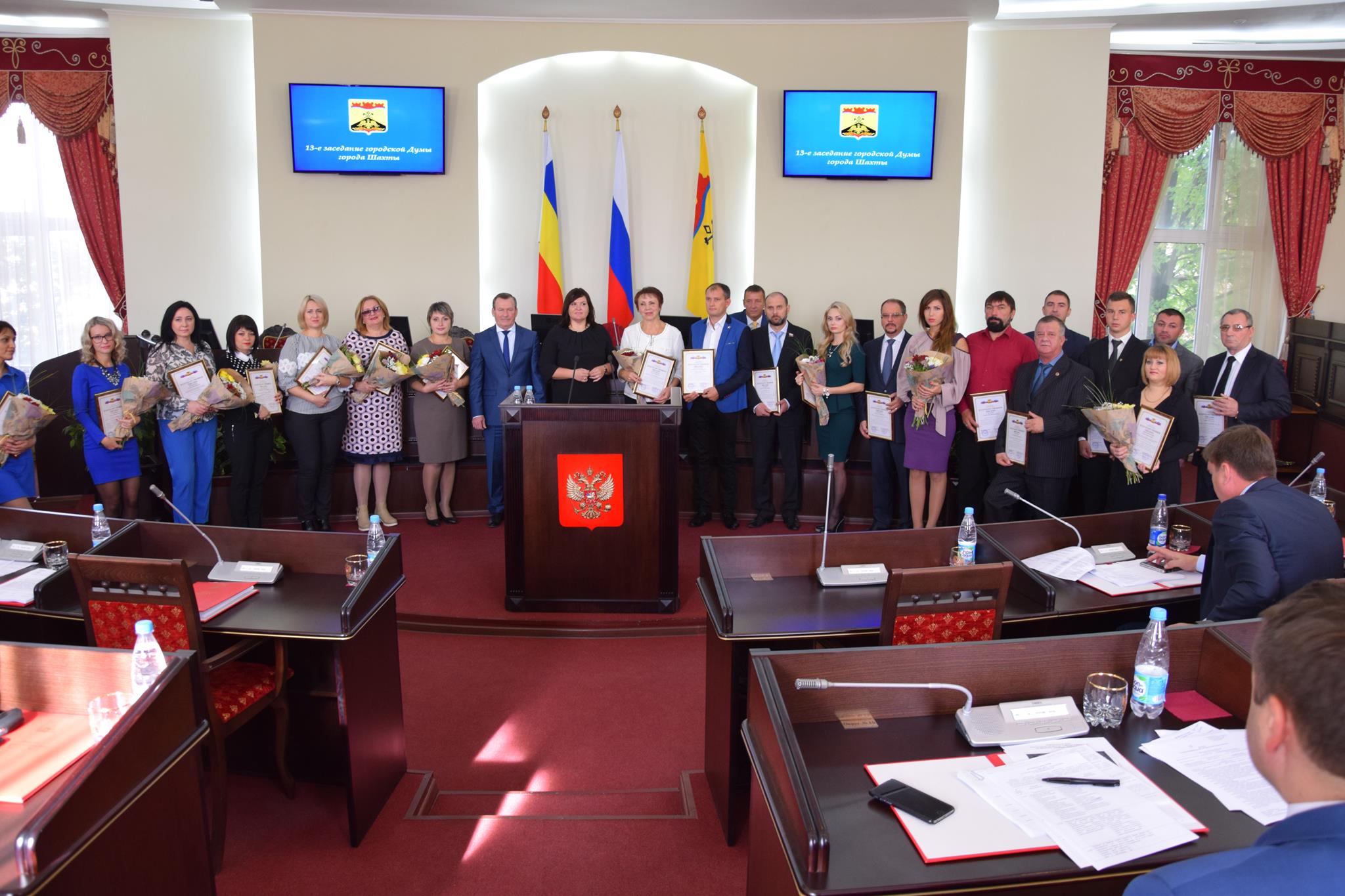 Далее состоялась церемония награждения сотрудников Администрации города Шахты и депутатов городской Думы города Шахты, участников областного турнира по мини-футболу среди команд исполнительной и законодательной власти городских округов и муниципальных районов Ростовской области. Благодарственные письма получили: Сергей Валерьевич Сиротский, Иван Сергеевич Кирпичков, Сергей Сергеевич Бесага, Максим Алексеевич Петренко, Андрей Валерьевич Садовой, Сергей Сергеевич Полупанов, Андрей Александрович Припоров, Сергей Владимирович Будник, Максим Эдуардович Реутов, Олег Витальевич Лещиков, Сергей Владимирович Столбовой, Александр Владимирович Березин.