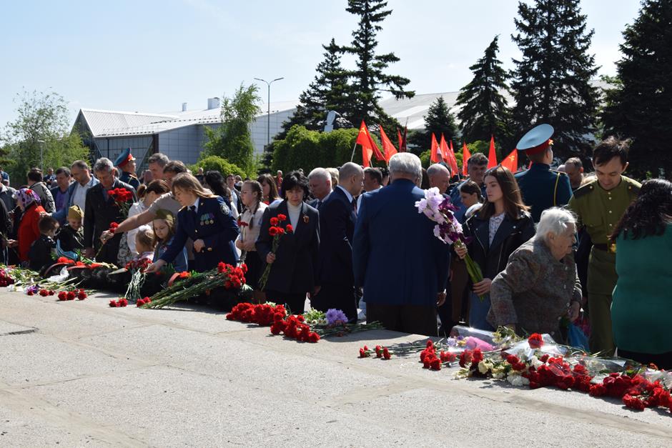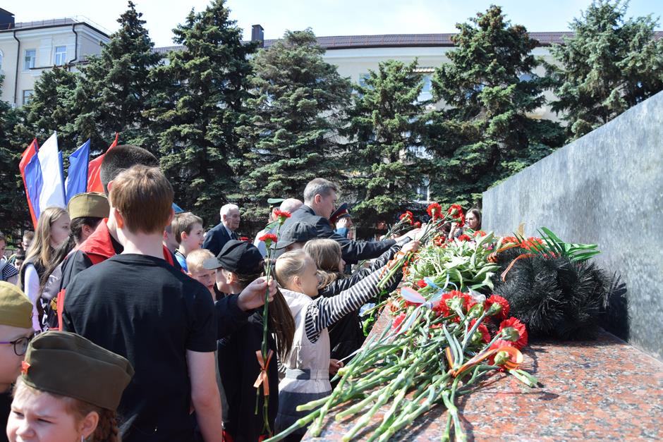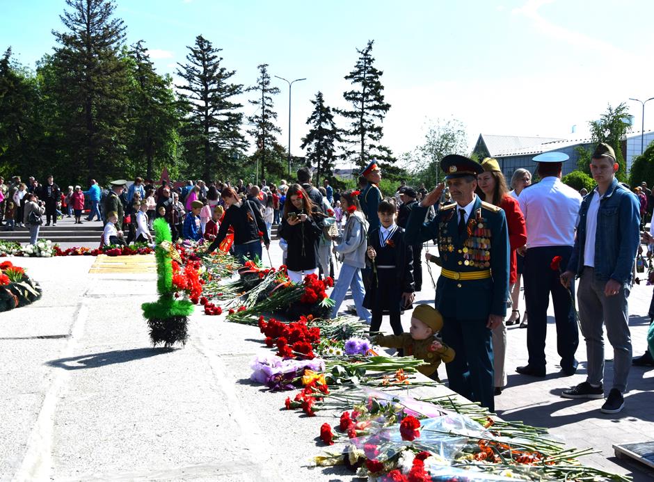 Склоняя головы перед ушедшими в вечность, мы чтим каждого. В День Победы прошло традиционное возложение цветов к 27-ми военно-мемориальным объектам: торжественные церемонии состоялись на святом для всех горожан месте – мемориальном комплексе «Жертвам фашизма» в поселке Красина, у монумента Солдату на площади 40-летия Победы и «Вечного огня» в Александровском парке. Мужество не вернувшихся и погибших воинов почтили минутой молчания.