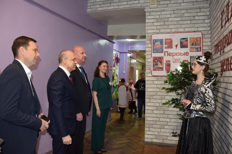 В фойе гостей праздника встретили актеры театра-студии «Синяя птица», которые провели экскурсию по историческому зданию Дома пионеров – именно такое название он носил в 1944 году, впервые открыв свои двери для шахтинской детворы 1 мая. Тогда он располагался по адресу: Победа Революции, 65. Это было небольшое учреждение, в котором работали всего 8 человек, а в кружках занимались 60 ребят. В 1946 году состоялся переезд в здание библиотеки им. А. С. Пушкина, к 1952-му кружки стали посещать уже 300 детей. Продолжали работу хоровой, вокальный, драматический, танцевальный и кружок народных инструментов. Появились и новые — в них воспитанники занимались рукоделием, художественным чтением, изобразительным искусством, стартовало юннатское движение. В постсоветское время Дом пионеров претерпел кардинальные изменения и продолжил развиваться уже как учреждение дополнительного образования детей.