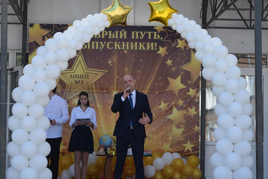 На торжественной линейке в лицее №3 к выпускникам обратился председатель городской Думы – глава города Шахты Константин Корнеев, 38 лет назад окончивший это учреждение. Он пожелал ребятам удачи на экзаменах, успехов на дальнейшем жизненном пути и в будущей профессии.