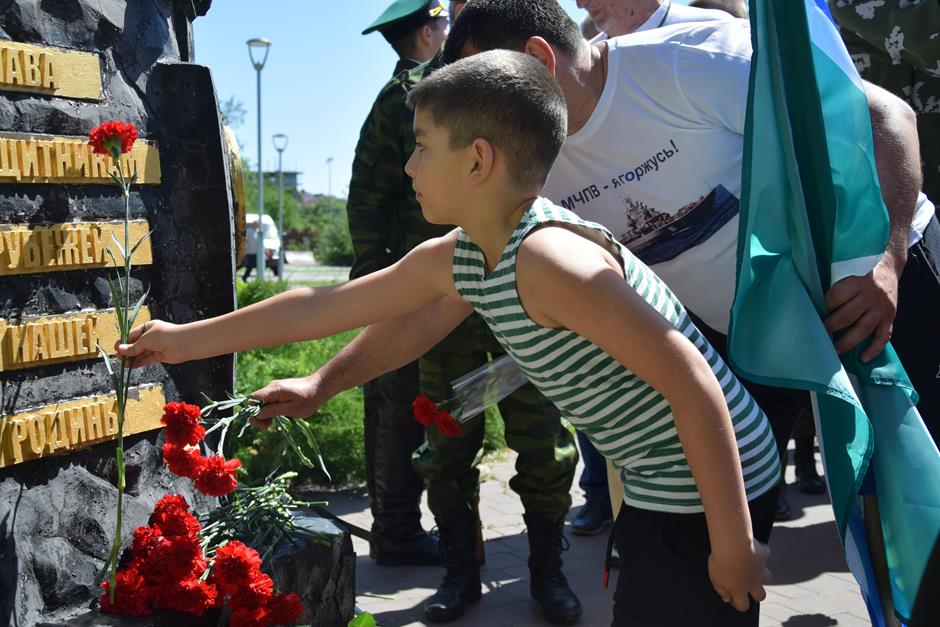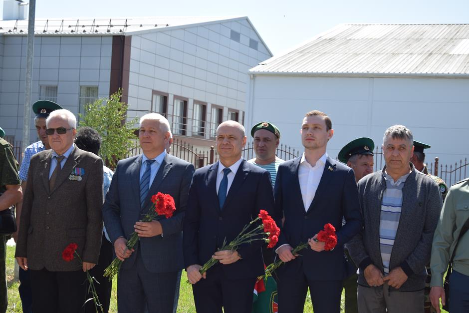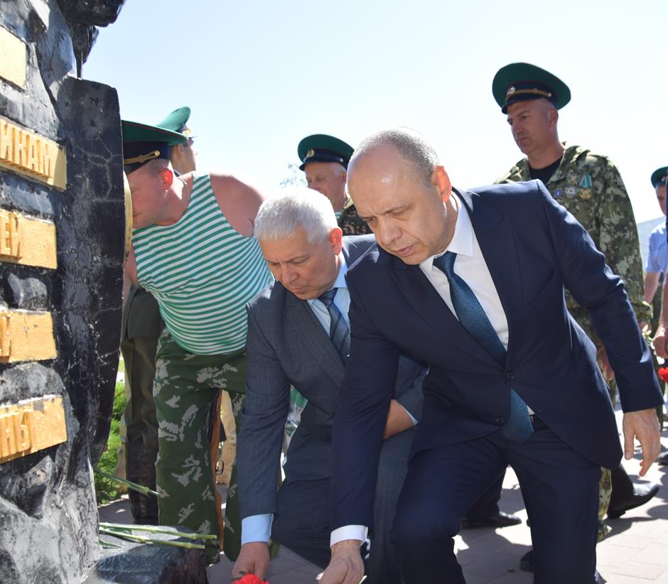 Память погибших пограничников собравшиеся почтили минутой молчания. К стеле «Слава защитникам рубежей нашей Родины» возложили цветы – в знак благодарности часовым государственных границ за службу Отечеству, смелость и мужество, верность воинскому долгу, риск своей жизнью, силу духа и бдительность.