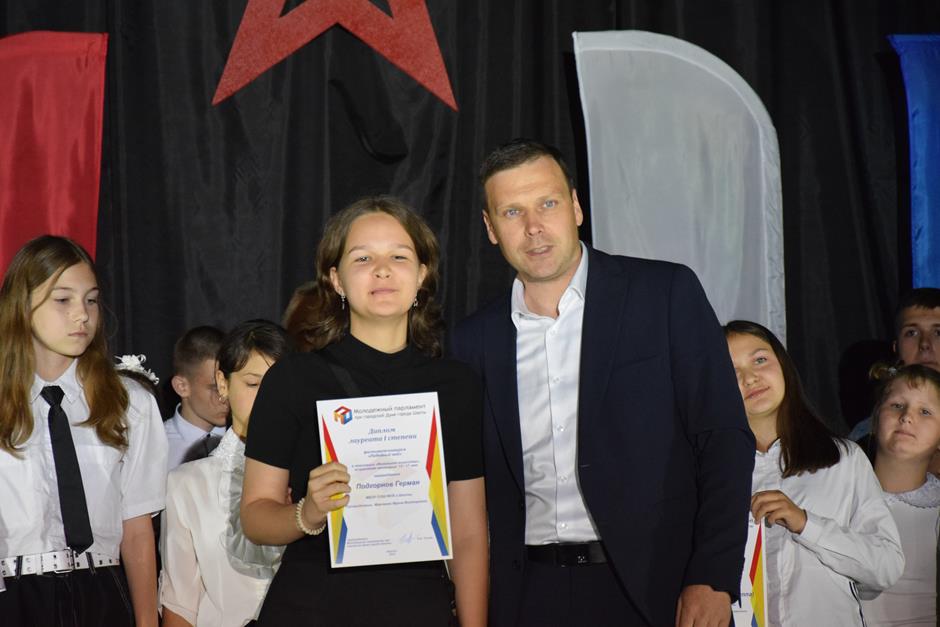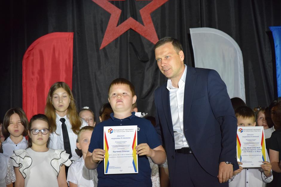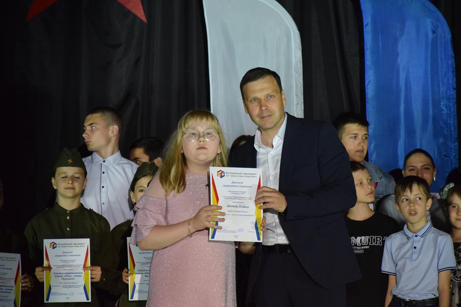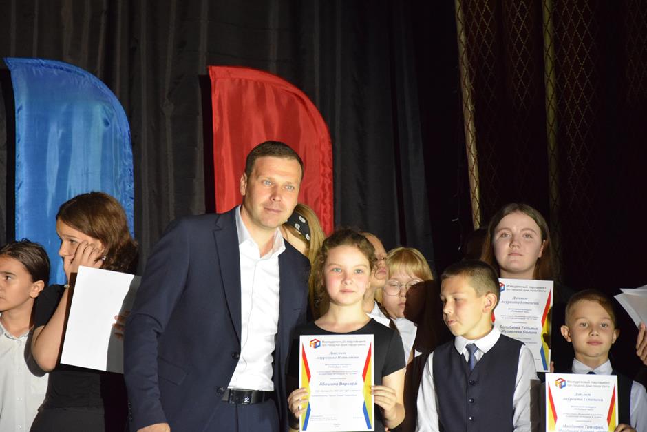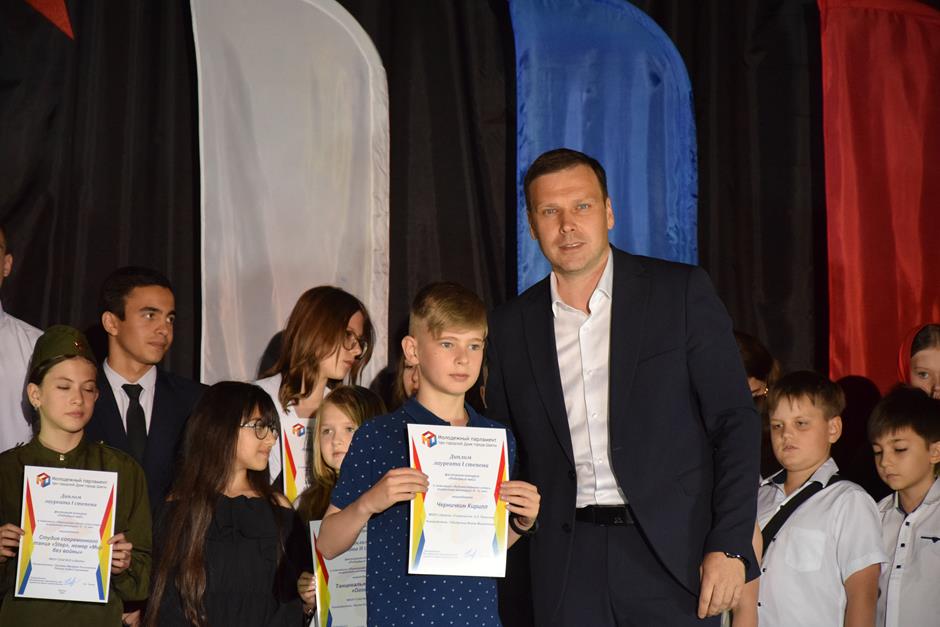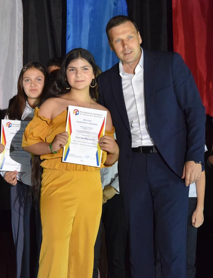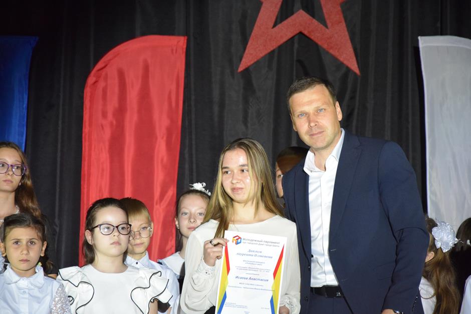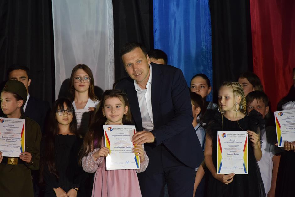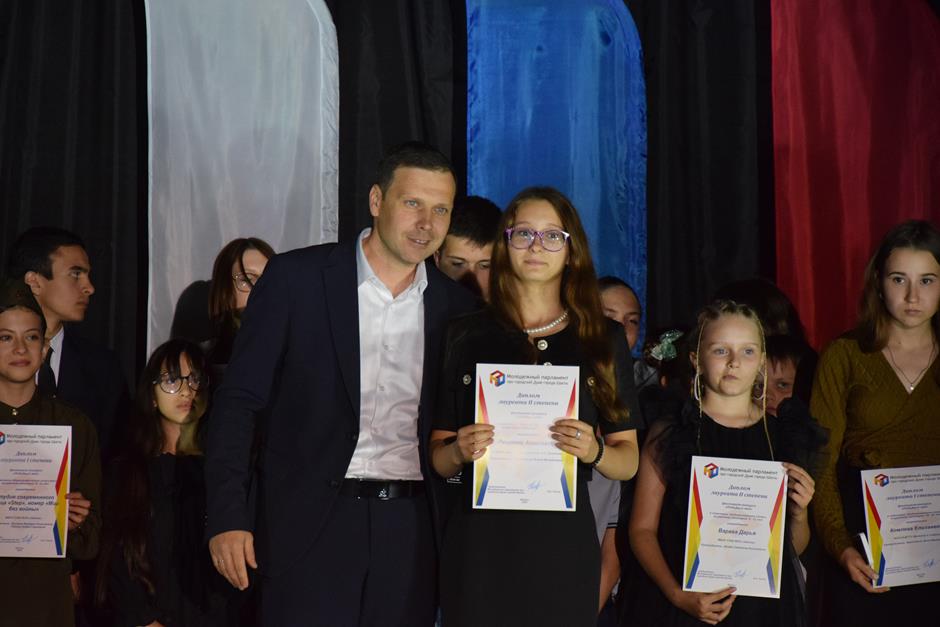 Лауреатов поощрил наградами заместитель председателя комитета по социальной политике городской Думы города Шахты, член исполнительного комитета Молодежного парламента Вадим Новоселов.