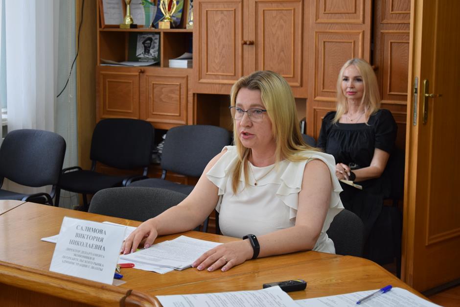 В своем отчете Виктория Салимова упомянула, что в целях обеспечения социальной стабильности и устойчивого развития экономики города в условиях санкций, в марте 2022 года распоряжением Администрации города Шахты был создан соответствующий Штаб. В текущем году проведено 2 заседания. На первом обсуждался вопрос перспективных направлений социально-экономического сотрудничества АО «БТК групп» с Администрацией города.