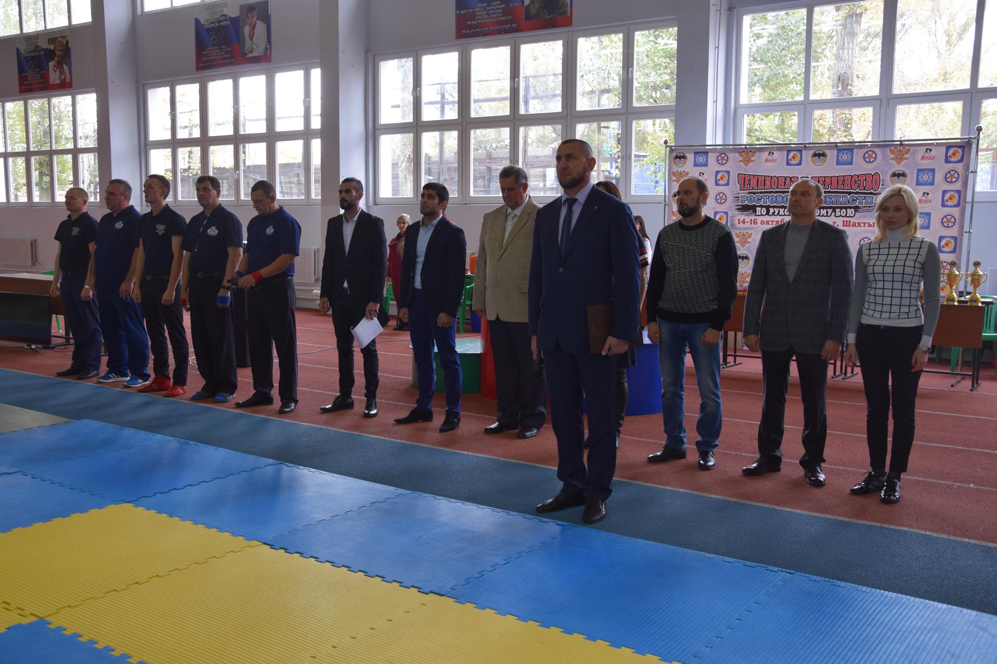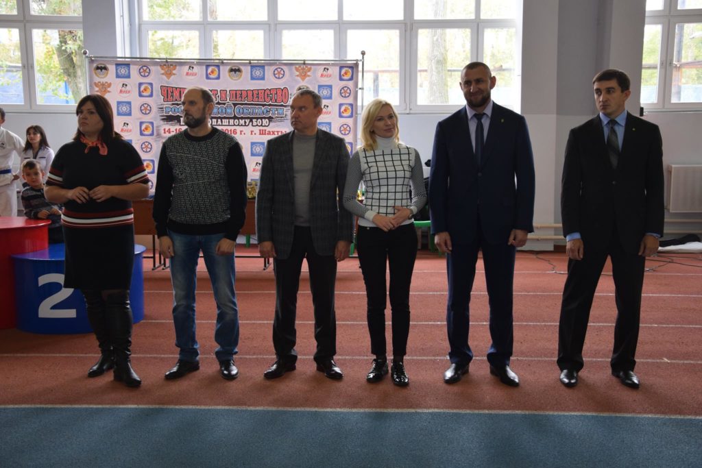 В торжественном открытии Первенства Ростовской области по рукопашному бою приняли участие председатель городской Думы — глава города Шахты Ирина Жукова, председатель комитета по молодежной политике, физической культуре, спорту и туризму Законодательного Собрания Ростовской области Екатерина Стенякина, зам.главы Администрации города Шахты Дмитрий Кравцов, депутат городской Думы Евгений Жадяев,заслуженный работник физической культуры России, помощник депутата Законодательного Собрания Ростовской области Александр Борзенко, президент РО ООО ФРБ, мастер спорта по рукопашному бою, тренер высшей категории, судья Международной категории, гвардии капитан запаса ВДВ Андрей Парыгин.