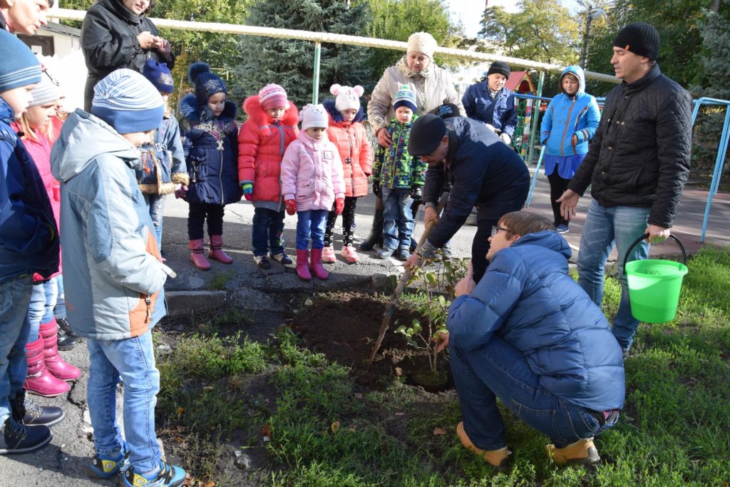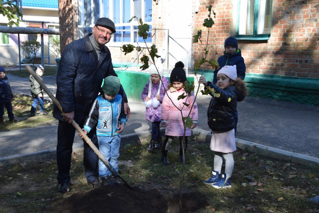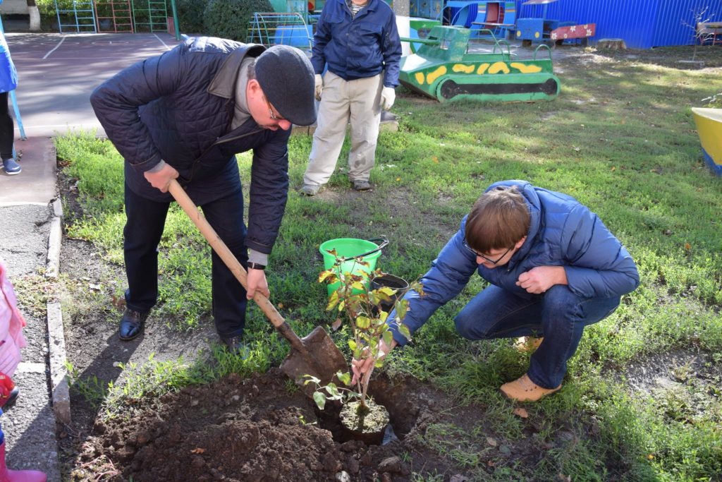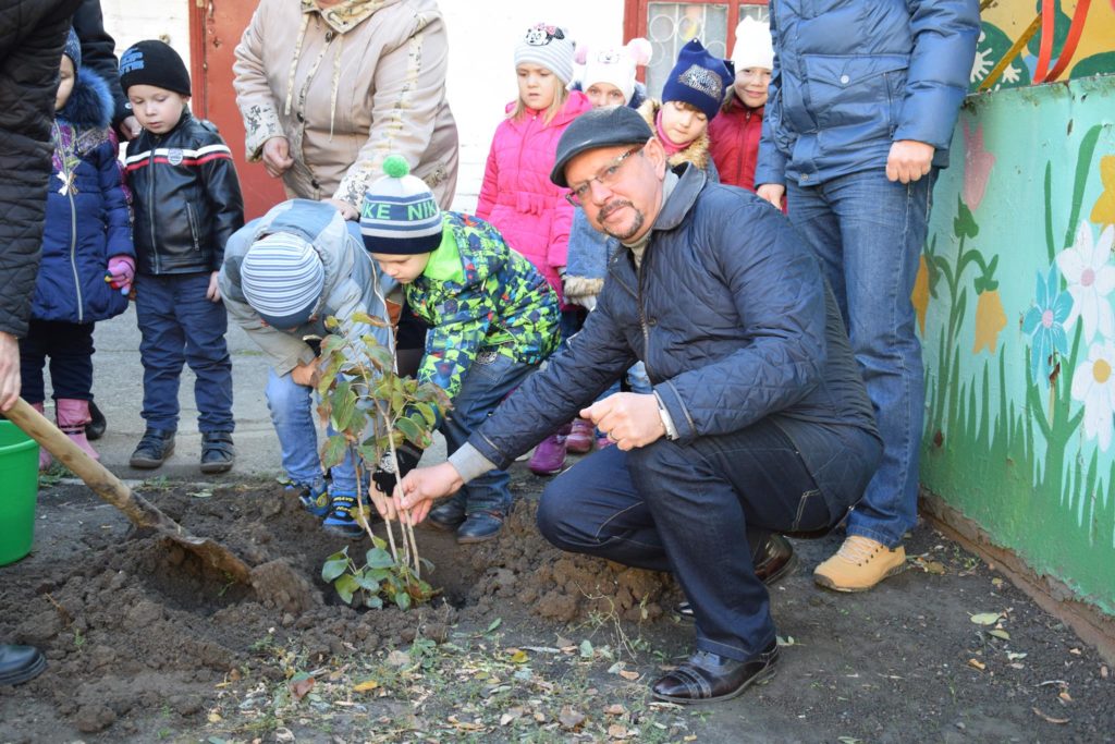 А депутат Аркадий Лазаревич Гершман вместе с помощниками высадил клёны, березы, сирень и розы на территории детских садов №24, 91, 37 и около лицея №6.