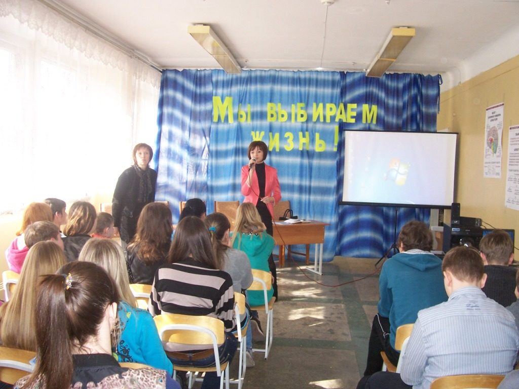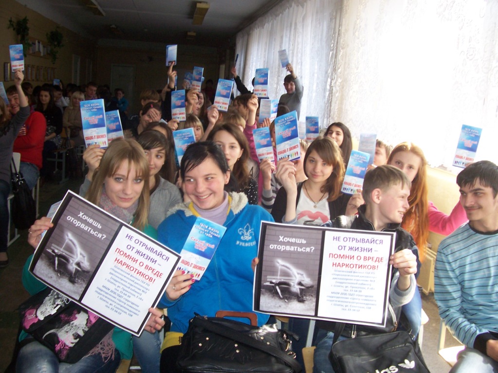 Перед школьниками выступила председатель общественной организации «Матери против наркотиков» В.С.Коваленко, которая привела статистические данные об употреблении наркотиков молодежью и подростками, рассказала о том, как трагично заканчивают жизнь молодые люди, которые не смогли побороть пагубную зависимость. Инструктор ЗОЖ В.В.Семашко рассказала о вреде наркотических веществ и об их влиянии на психическое состояние. Председатель уличного комитета Л.Н.Моргунова разъяснила, как может пагубно сказаться на подростке влияние плохой компании и уговоры «только попробовать», как потом трудно человеку реабилитироваться, восстановить своё здоровье и вписаться в рамки нормального общества. В завершение встречи приглашённые ответили на вопросы учащихся, а помощник председателя городской Думы Екатерина Смолякова рассказала о работе Молодёжного парламента, его структуре, планах работы и призвала учеников к активной реализации себя в организации различных мероприятий в школе, в округе и городе. Встреча произвела на всех присутствующих сильное впечатление, заставила задуматься о том зле, которое несут наркотики в общество.
