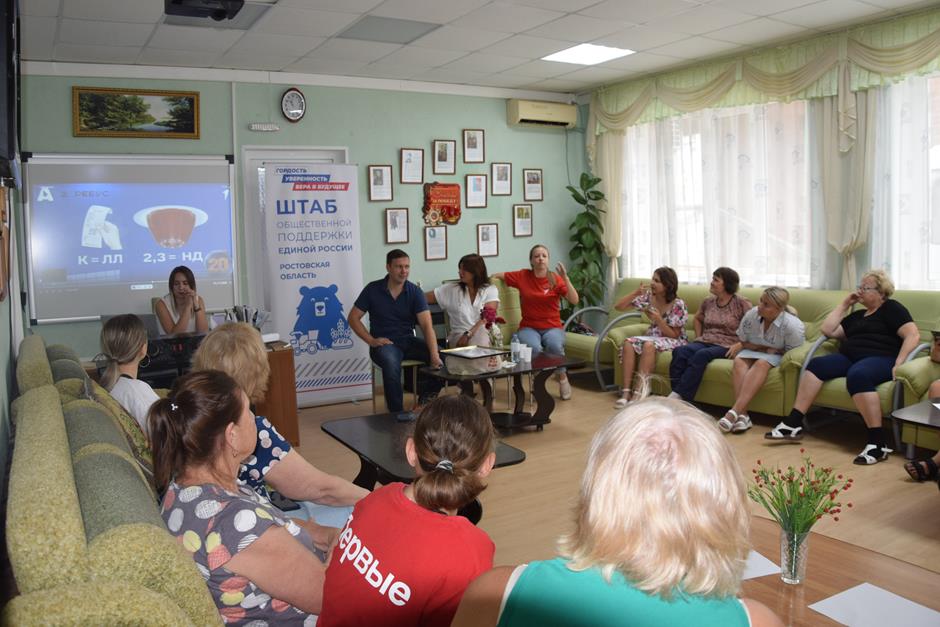Встреча состоялась в рамках реализации федерального проекта партии «Единая Россия» «Старшее поколение» при участии исполнительного секретаря местного отделения Эльвиры Мусаевой и куратора проекта в городе Шахты, депутата городской Думы Вадима Новоселова.