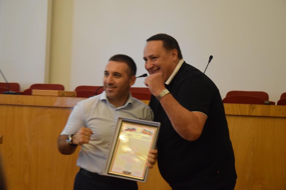 Торжественная церемония награждения состоялась в Администрации города Шахты. Тренеров и преподавателей физической культуры, в формате видеообращения, поздравил министр по физической культуре и спорту Ростовской области Самвел Аракелян.