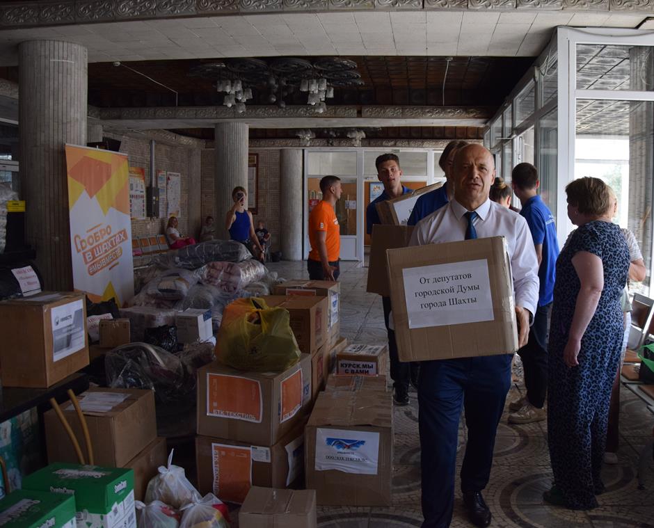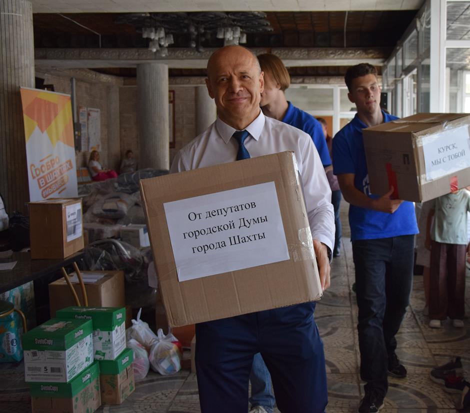 Председатель городской Думы – глава города Шахты Константин Корнеев от сотрудников аппарата и депутатов городской Думы передал в пункт приема предметы первой необходимости: спальные и банные принадлежности, средства личной гигиены, одежду и обувь, канцелярию для школы. Он отметил исключительную важность этого мероприятия и поблагодарил волонтеров за его организацию. Константин Кузьмич также выразил искреннюю признательность шахтинцам за сплоченность, неравнодушие и помощь.