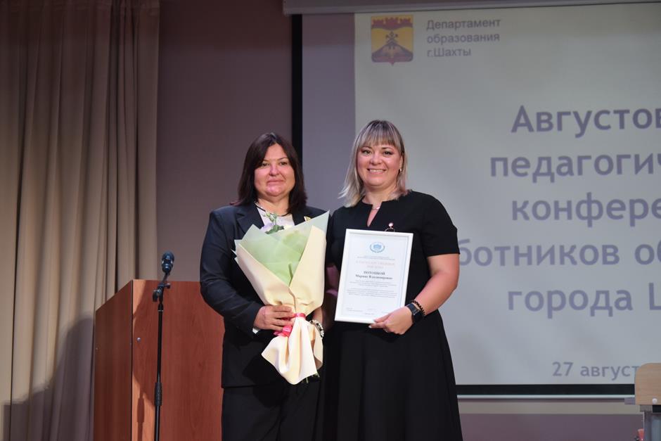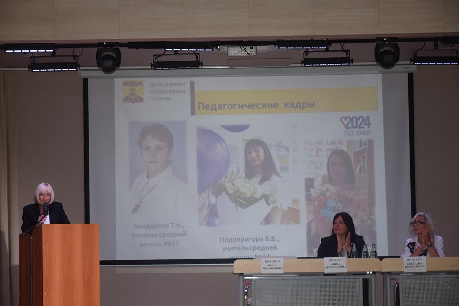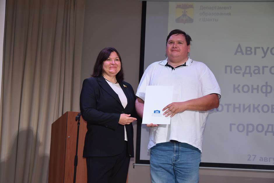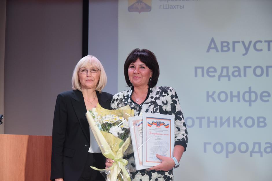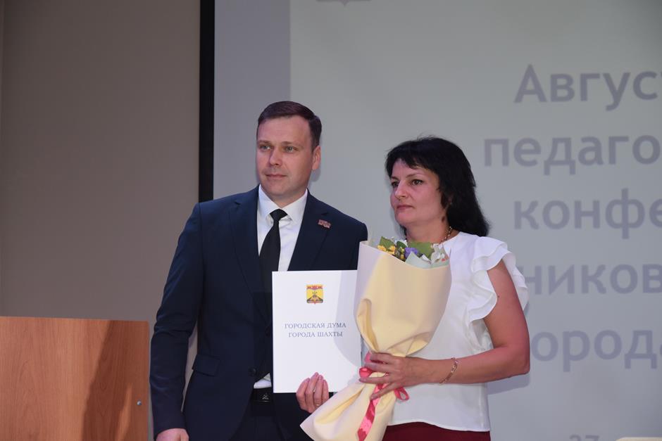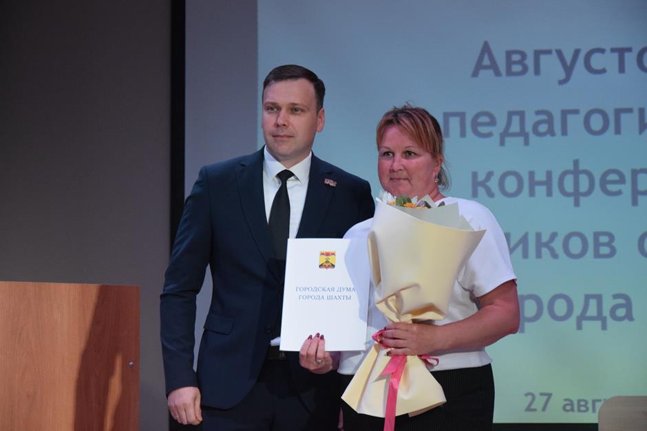 Встреча работников образования состоялась в школе №38. С приветственным словом к участникам августовской конференции обратились председатель комитета Законодательного Собрания Ростовской области по взаимодействию с общественными объединениями, молодежной политике, физической культуре, спорту и туризму Ирина Жукова, заместитель комитета городской Думы по социальной политике Вадим Новоселов, исполняющий обязанности заместителя главы Администрации Светлана Морозова, помощник депутата ЗСРО Евгения Понамаренко Татьяна Гвоздарева, председатель шахтинской городской организации профсоюза работников образования и науки Российской Федерации Людмила Морозова, Благочинный Александровск-Грушевского округа, иерей Александр Теличкин. Выступавшие пожелали педагогическому сообществу успехов в грядущем учебном году и отметили лучших наградами государственного, областного и муниципального уровней — за высокие профессиональные достижения.